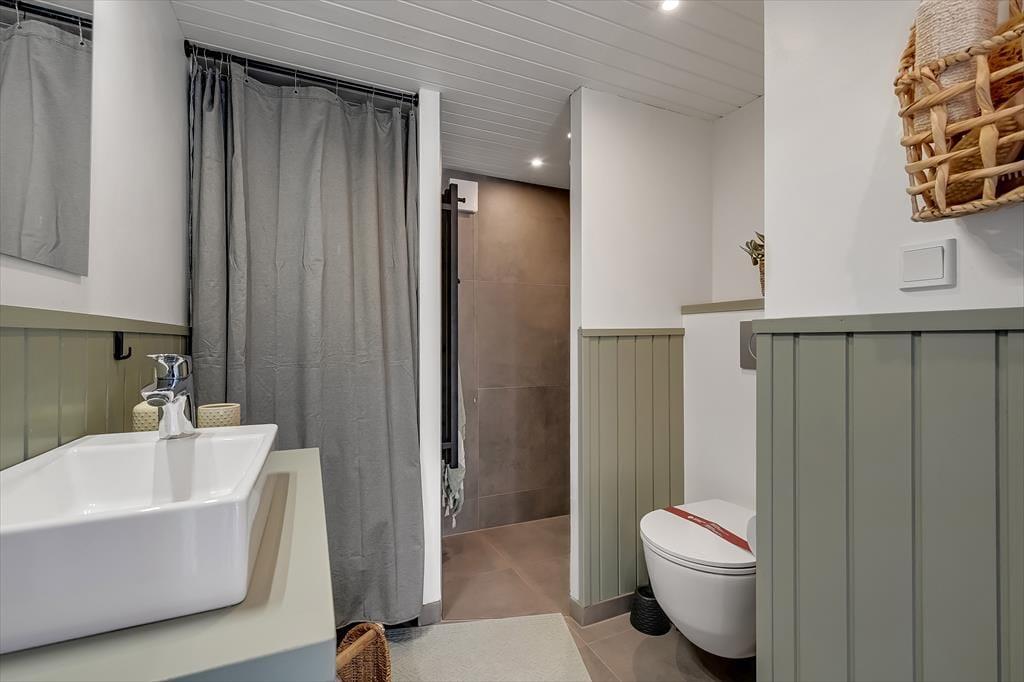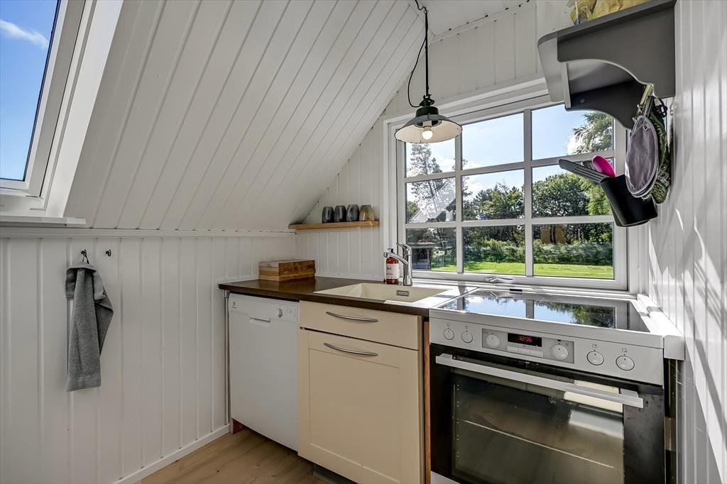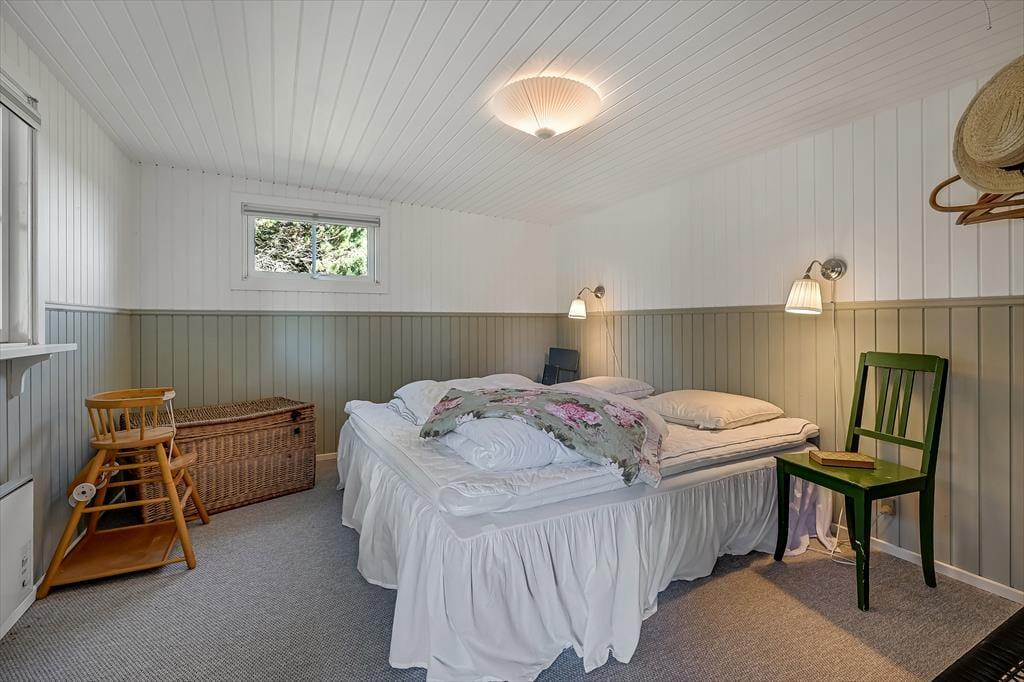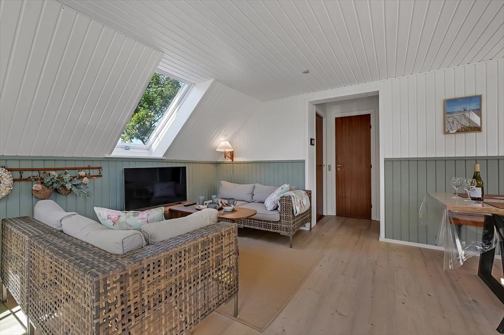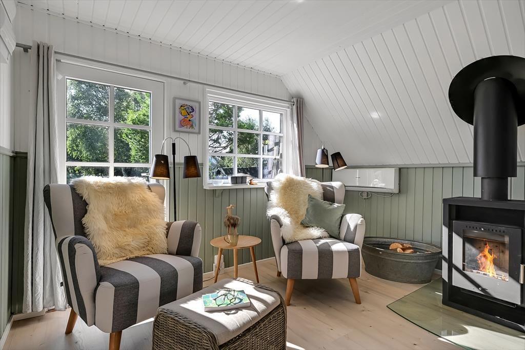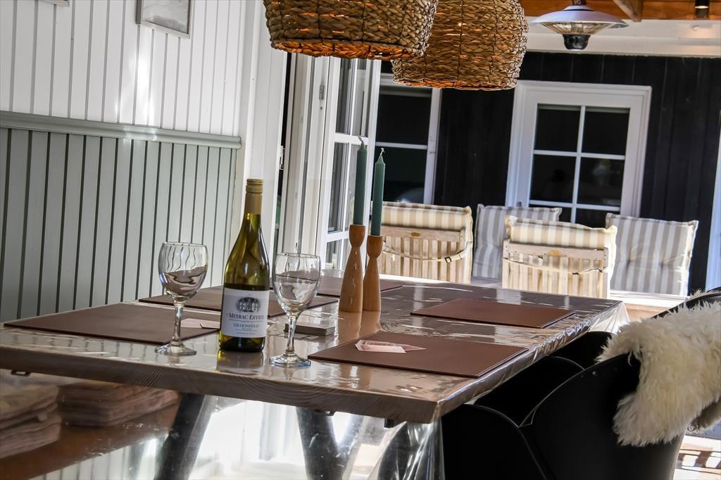Draußen erwartet euch ein großes, herrliches Naturgrundstück, das euch das Gefühl gibt, euer eigenes kleines Refugium mitten in Blåvands wunderschöner Natur zu haben. Die Kinder werden es lieben, auf der Wiese zu spielen, im Spielturm zu klettern oder das Gebiet rund um den Shelter zu erkunden, wo sie stundenlang kleine Abenteuer erleben können. Für die Erwachsenen gibt es viele gemütliche Plätze zum Verweilen – besonders die überdachte Terrasse mit Oberlichtern. Hier könnt ihr die Türen weit öffnen und Innen- und Außenbereich ineinander übergehen lassen. So lassen sich die Sommerabende mühelos verlängern, selbst wenn der Tau fällt, während der Duft von Gegrilltem und das Zwitschern der Vögel die Atmosphäre perfekt abrunden.