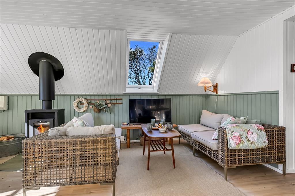 Schon beim Betreten des Ferienhauses spürst du die besondere Atmosphäre von Gemütlichkeit und Wärme. Das Haus strahlt Persönlichkeit und Charme aus – hier fühlt man sich vom ersten Moment an zuhause. Das Wohnzimmer ist der natürliche Treffpunkt, an dem ihr euch nach einem erlebnisreichen Tag entspannen könnt. An kühleren Abenden bietet es sich an, den Kaminofen anzuzünden. Das Knistern der Flammen und ihre wohlige Wärme schaffen die perfekte Urlaubsstimmung, während das Licht der Fenster die Natur draußen in die Einrichtung einbezieht.