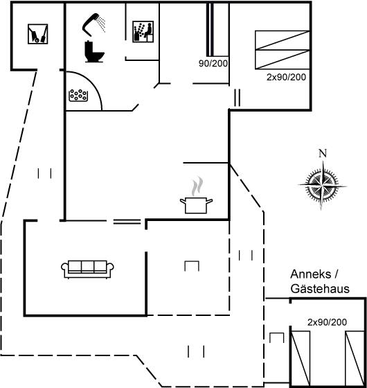 Ein gemütliches Ferienhaus auf einem großen, hügeligen Naturgrundstück mit Heide und Bäumen gelegen. Ungestörte, offene sowie überdachte Terrasse. Außerdem steht ein Gästehaus, das mit 2 Schlafplätzen eingerichtet ist, zur Verfügung. Übrigens: Das Wohnzimmer und ein Schlafzimmer befinden sich in versetzter Ebene.
