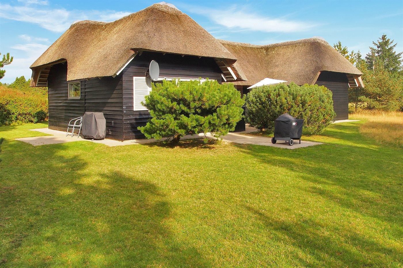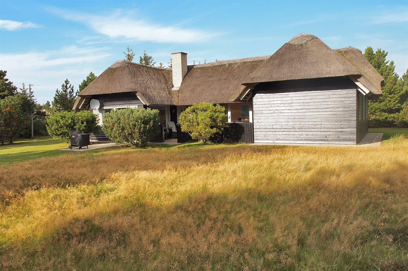 Gemütliches Ferienhaus mit Reetdach und abgeschirmter Terrasse in Blåvand, ideal für erholsame Tage in der Natur.