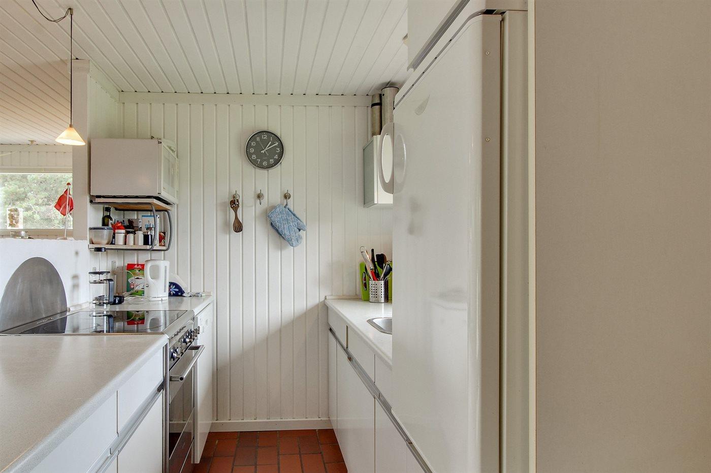 Die Küche ist mit Kühlschrank ausgestattet. Außerdem gibt es 4 elektrische Kochplatten, Backofen, Mikrowelle sowie Geschirrspüler.