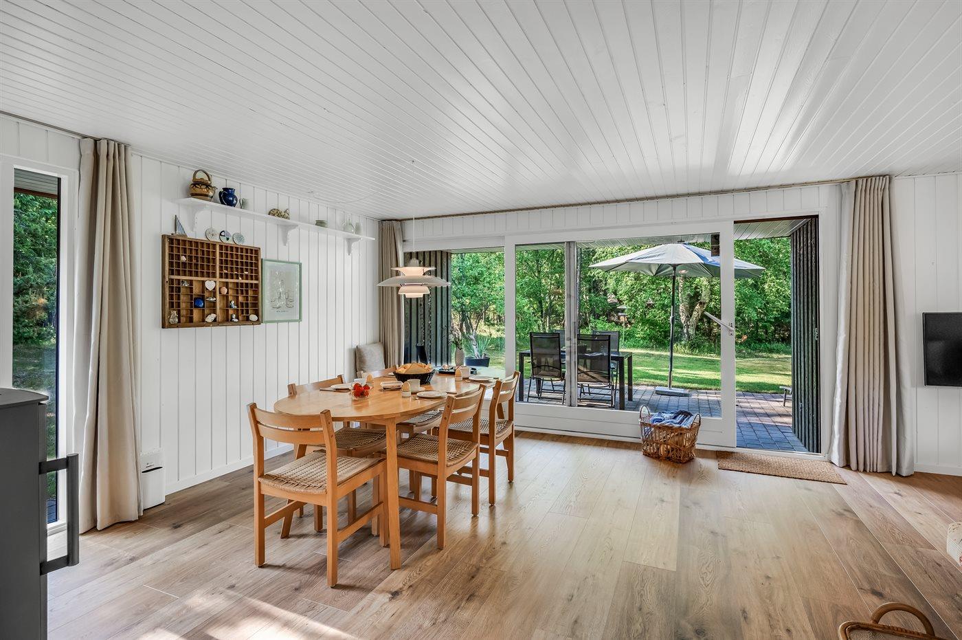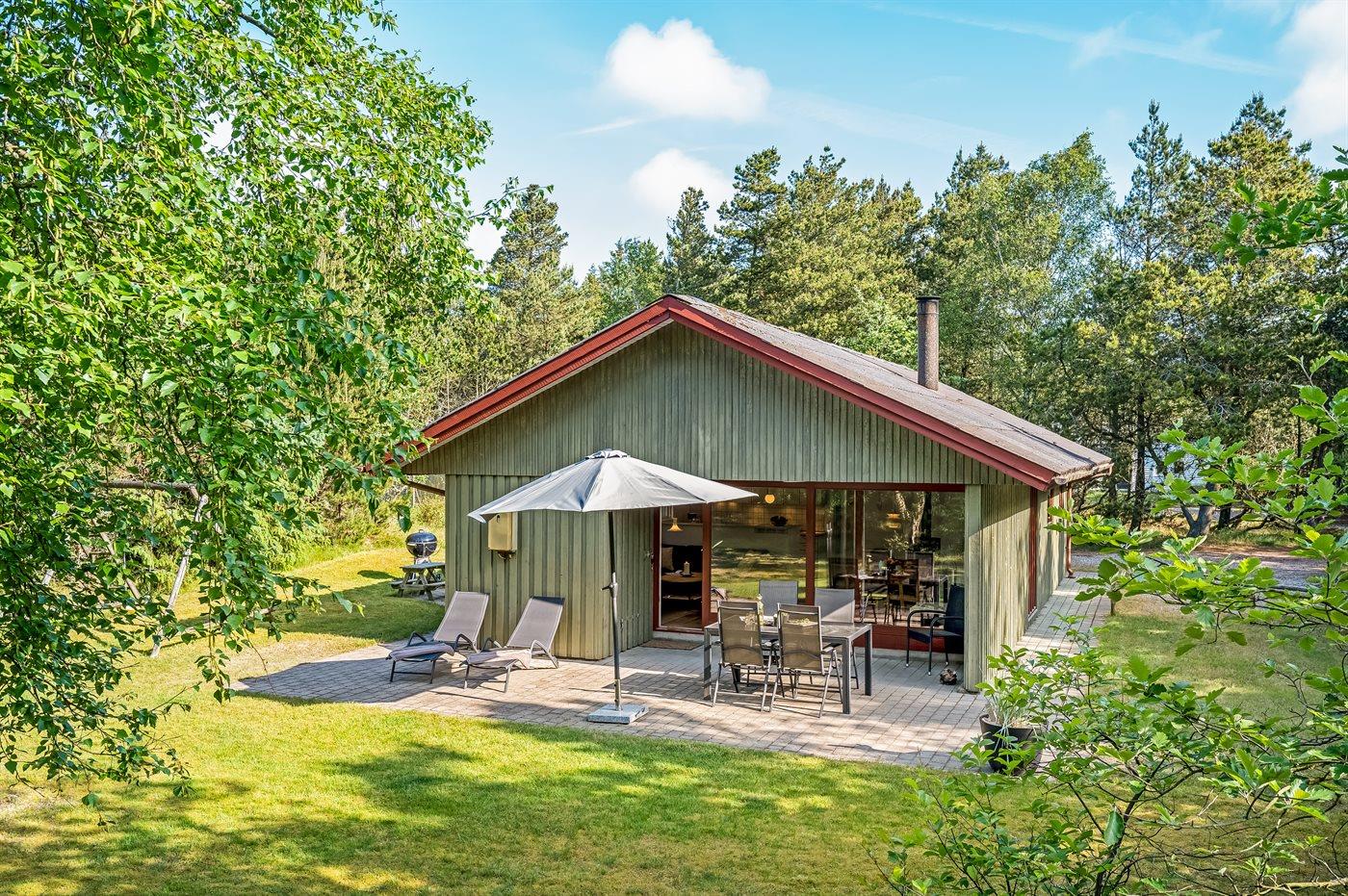 Gepflegtes Ferienhaus auf einem mit hohen Bäumen bewachsenen Naturgrundstück am Ende einer Sackgasse gelegen.