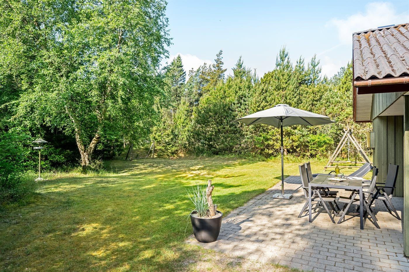 Die Ferienunterkunft liegt auf einem 2560 m² großen Naturgrundstück. Die Entfernung zum Meer beträgt 1300 m. Die nächste Einkaufsmöglichkeit liegt 900 m entfernt. Es steht ein 15 m² Terrassenareal zur Verfügung. Außerdem gibt es 5 m² überdachte Terrasse. Geräteraum. Schaukel. Sandkasten. Es steht ein Grill zur Verfügung. Es ist ein Ladestecker für Elektroautos installiert. Parkplatz auf dem Grundstück.
