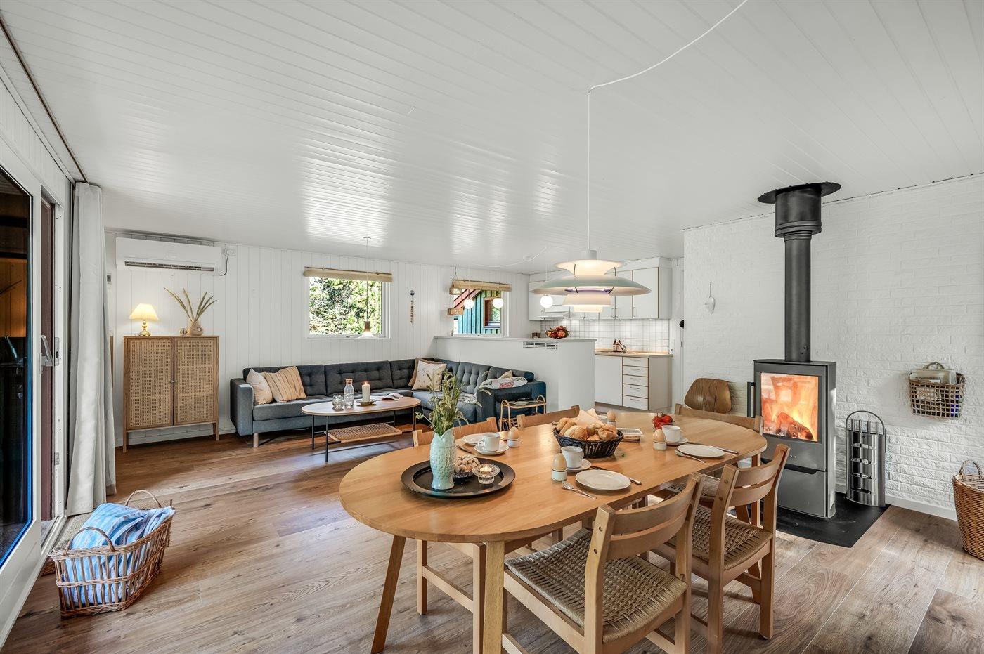 Das Ferienhaus eignet sich für 6 Personen sowie 1 Kleinkind bis zu 3 Jahren. Die Ferienunterkunft hat eine Wohnfläche von 80 m² und wurde 1977 gebaut. 1995 wurde die Ferienunterkunft teilweise renoviert. Es ist erlaubt 1 Haustier mitzubringen. Die Ferienunterkunft ist mit energiesparender Wärmepumpe ausgestattet. Die Ferienunterkunft ist mit Waschmaschine ausgestattet. Wäschetrockner. Tiefkühlmöglichkeit mit 10 Liter Nutzinhalt. Es gibt außerdem einen Kaminofen. Für die jüngsten Feriengäste ist 1 Kinderhochstuhl vorhanden.