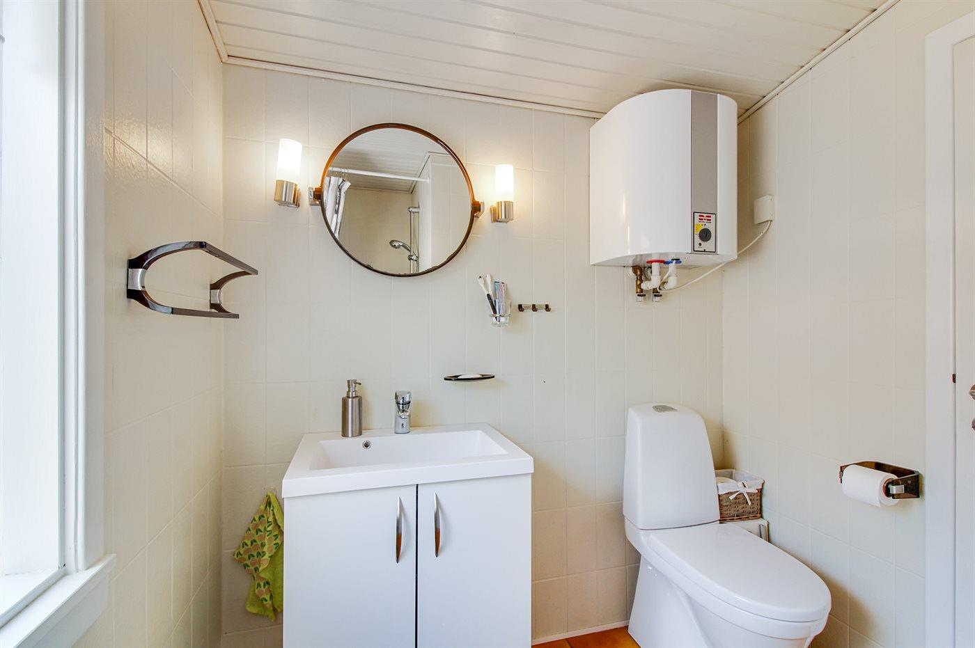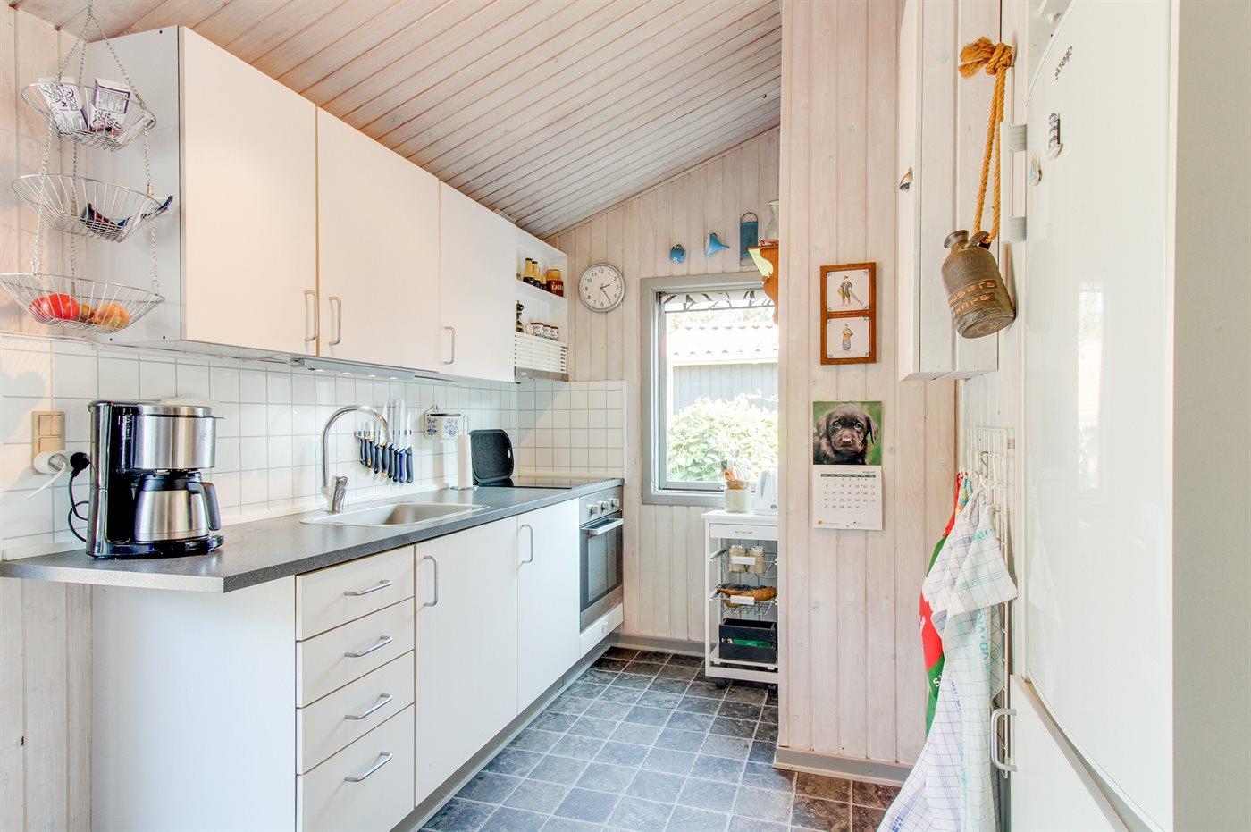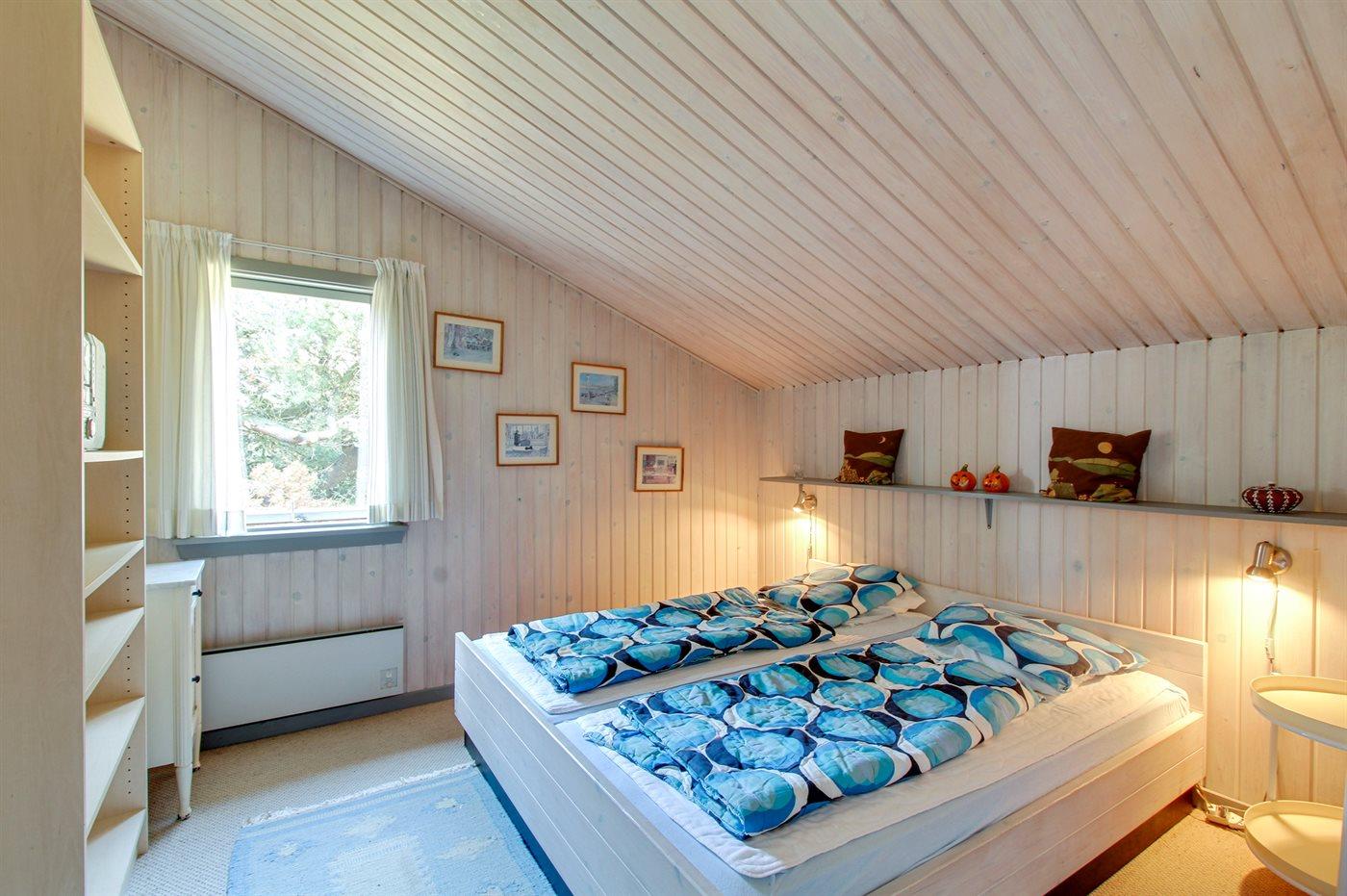 Dieses gepflegte blau- und weiß gestrichene Ferienhaus aus Holz, 1960 gebaut und 2000 renoviert, ist auf einem Naturgrundstück gelegen, von hohen Bäumen umgeben. Nach Norden gerichtete Terrasse und große nach Süden gerichtete Terrasse mit Gartenmöbeln. Sandkiste und 3 Schaukel für die Kinder. Teppichboden überall, jedoch Klinkerboden im Badezimmer und PVC-Boden in der Küche. Hell gebeizte Decken und Wände. Das Badezimmer mit Fußbodenheizung und Duschnische wurde 2015 modernisiert. Gemütliches Wohnzimmer mit TV, digitaler Satellitenanschluss und Radio mit CD-Spieler. Die große helle Küche mit gutem Schrankplatz ist u. a. mit kleinem Tiefkühlgerät und Umluftofen ausgestattet. Außerdem Kinderbett vorh. Neben dem Haupthaus gibt es eine Garage.
