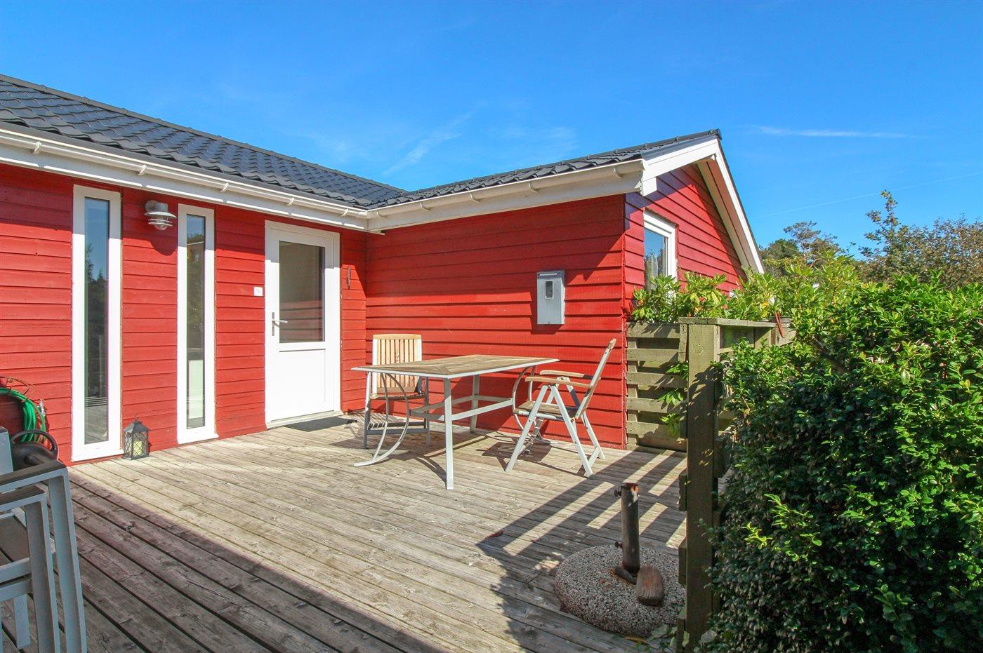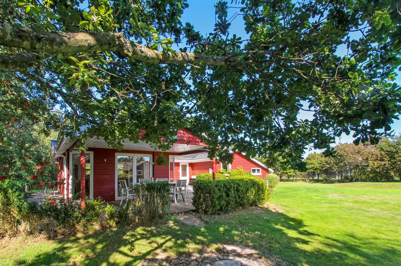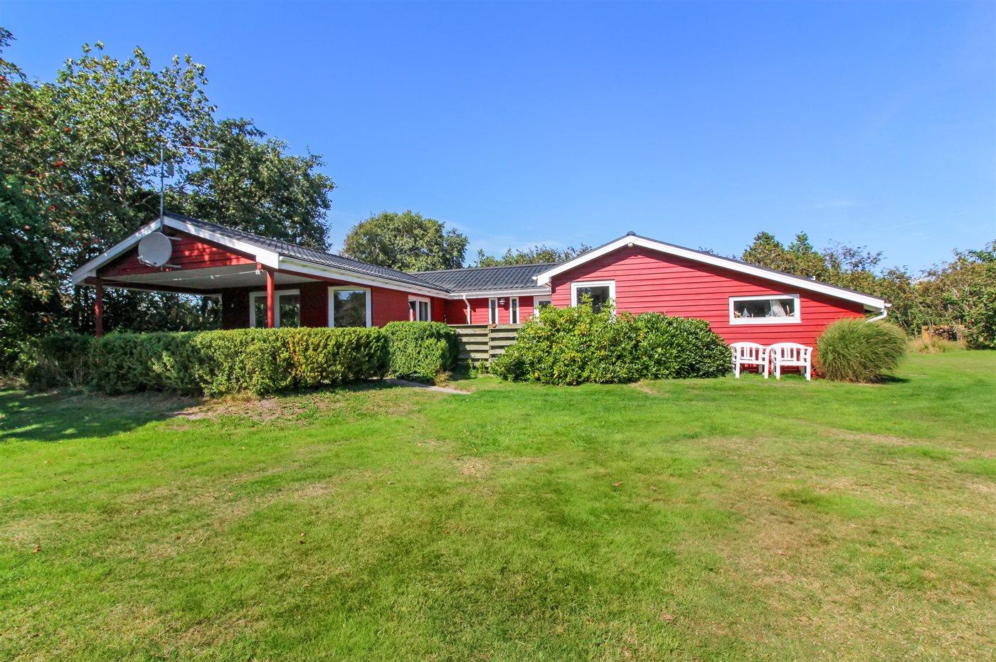 Dieses schöne Ferienhaus aus Holz, 2001 renoviert, liegt auf einem Naturgrundstück mit Gras, das von Bäumen und Hagebuttensträuchern umgeben ist - nur 250 m vom herrlichen Sandstrand entfernt. Zum Haus gehört sowohl offene als auch überdachte Terrasse mit Gartenmöbeln. Innen gibt es teils Holzböden, teils PVC-Böden und teils Teppich. Holzwände und -decken. Badezimmer mit Duschnische, Waschmaschine und Wäschetrockner. Gut ausgestattete Küche mit Tiefkühlgerät, Umluftofen, Mikrowelle, Geschirrspüler und Herd mit Ceran-Feld. Großes gemütliches Wohnzimmer, in dem Sie u. a. Kaminofen, TV mit Satellitenanschluss und Radio mit CD-Spieler finden. Ferner kostenlose, kabellose Internetverbindung vorhanden (Computer ist mitzubringen). Für die jüngsten Feriengäste steht ein Kinderhochstuhl zur Verfügung. Ein gut gelegenes Ferienhaus der Sonderklasse dicht an Sand und Wasser.