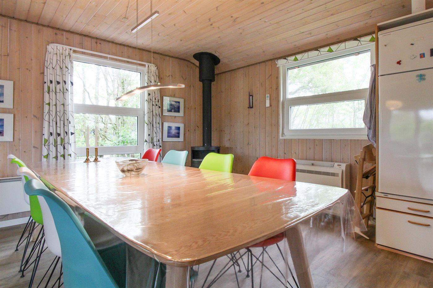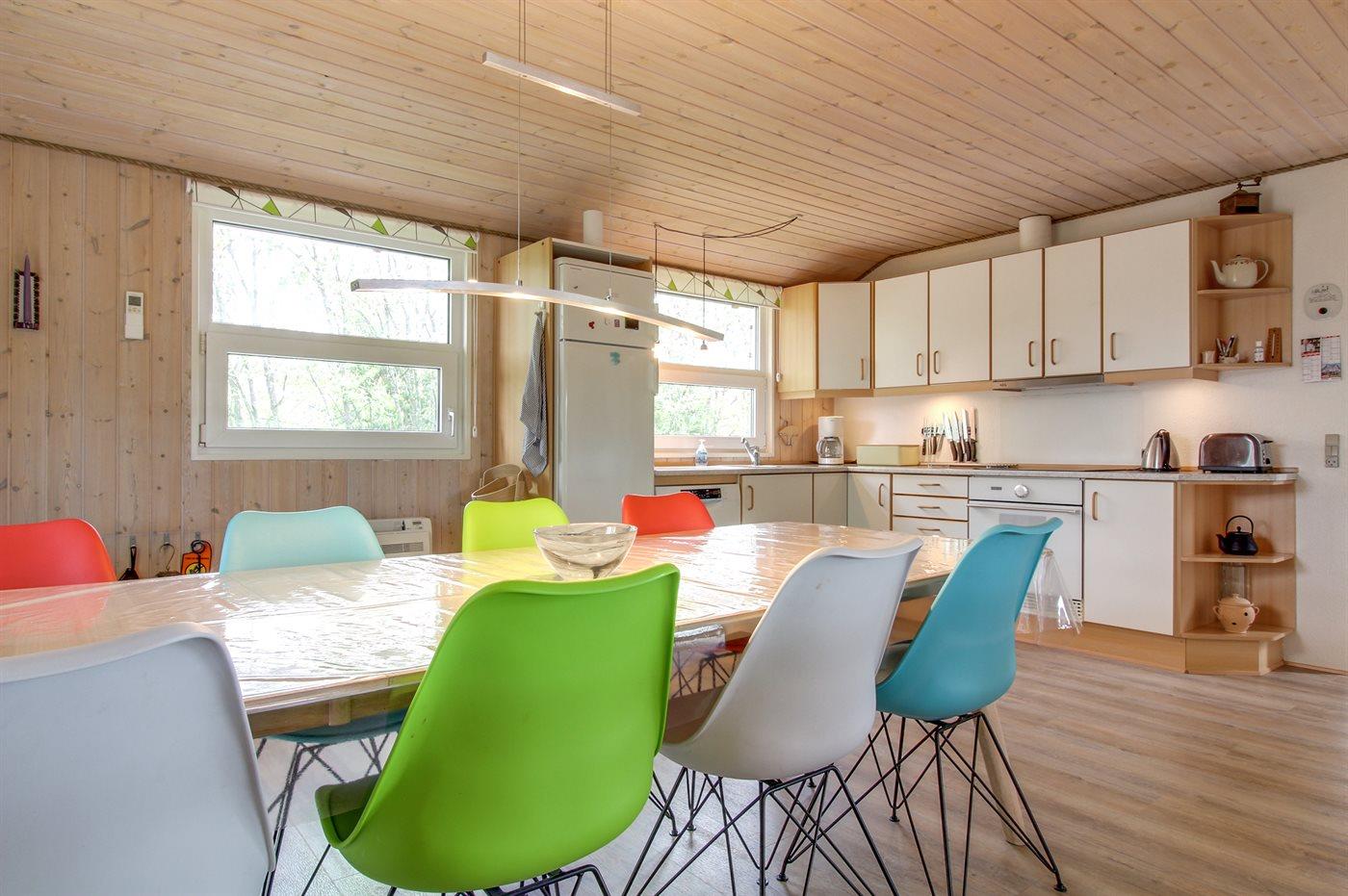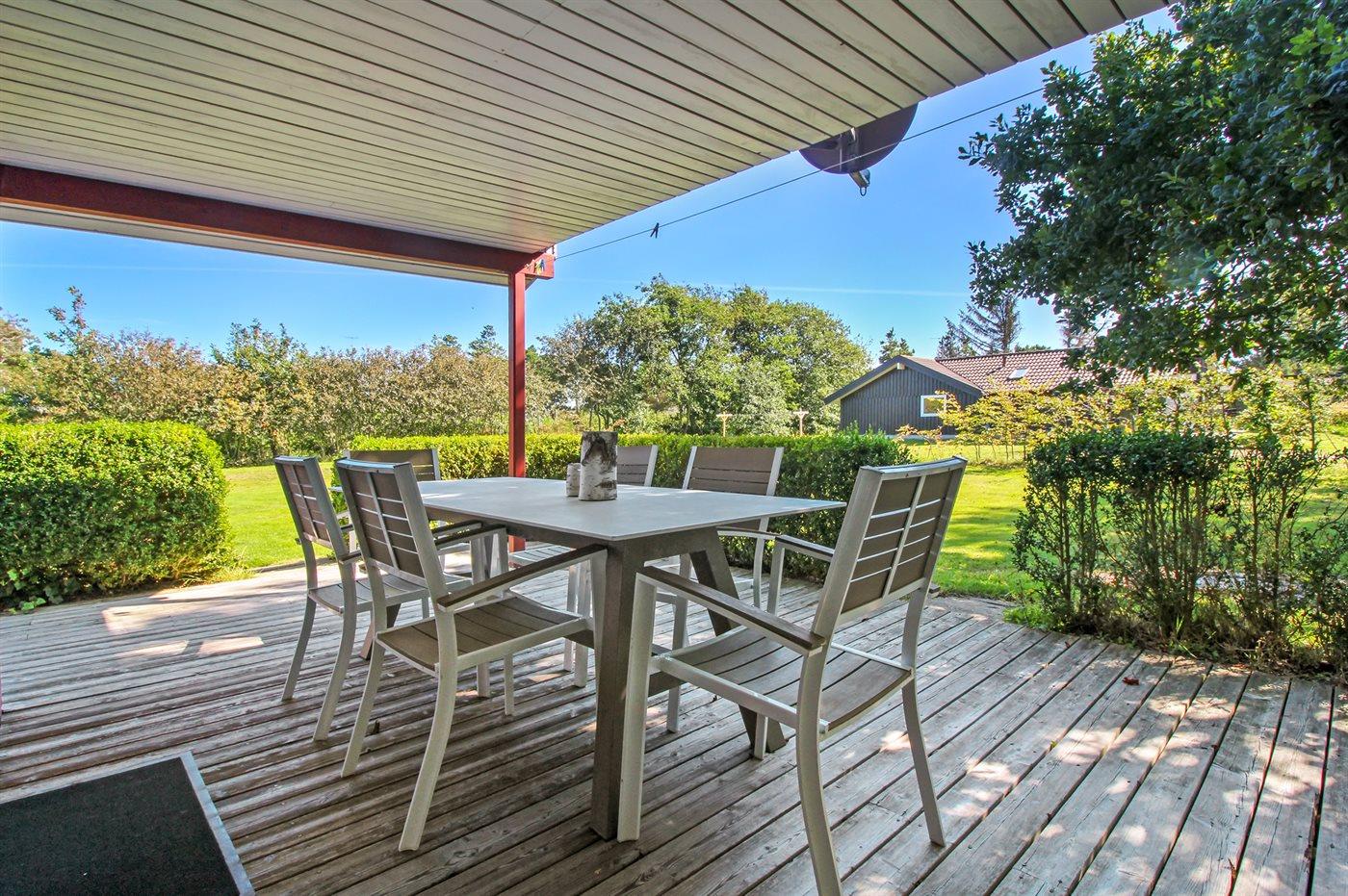 Dieses schöne Ferienhaus aus Holz, 2001 renoviert, liegt auf einem Naturgrundstück mit Gras, das von Bäumen und Hagebuttensträuchern umgeben ist - nur 250 m vom herrlichen Sandstrand entfernt. Zum Haus gehört sowohl offene als auch überdachte Terrasse mit Gartenmöbeln. Innen gibt es teils Holzböden, teils PVC-Böden und teils Teppich. Holzwände und -decken. Badezimmer mit Duschnische, Waschmaschine und Wäschetrockner. Gut ausgestattete Küche mit Tiefkühlgerät, Umluftofen, Mikrowelle, Geschirrspüler und Herd mit Ceran-Feld. Großes gemütliches Wohnzimmer, in dem Sie u. a. Kaminofen, TV mit Satellitenanschluss und Radio mit CD-Spieler finden. Ferner kostenlose, kabellose Internetverbindung vorhanden (Computer ist mitzubringen). Für die jüngsten Feriengäste steht ein Kinderhochstuhl zur Verfügung. Ein gut gelegenes Ferienhaus der Sonderklasse dicht an Sand und Wasser.