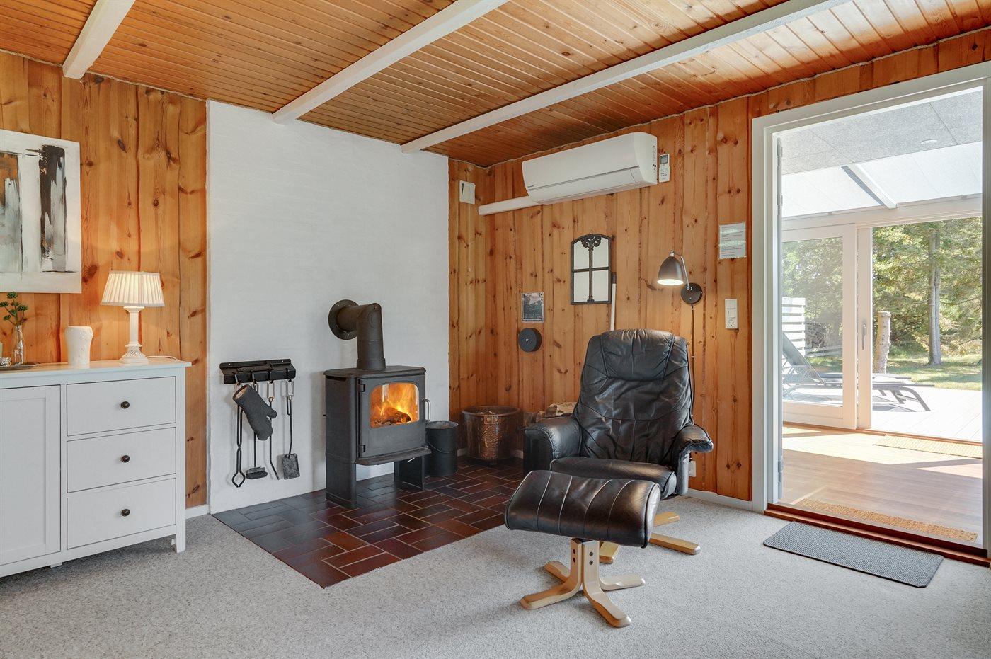 Schönes, gut erhaltenes Ferienhaus. Das Haus ist 1976 aus Holz gebaut, und 2004 modernisiert worden. Das Ferienhaus liegt auf einem schönen, großen und abgeschirmten Naturgrundstück. Schöne Terrasse mit angehörenden Gartenmöbeln. Badezimmer mit Duschnische und beheizbarem Fußboden. Offene Küche mit Herd mit Ceran-Feld, Mikrowelle, Tiefkühlgerät und Geschirrspüler eingerichtet. Hübsches, großes Wohnzimmer mit Zutritt zum Wintergarten. Im Wohnzimmer gibt es TV mit digitalem Satellitenanschluss, DVD-Spieler und Stereoanlage mit CD-Spieler sowie Kaminofen. Die Schlafplätze des Hauses verteilen sich auf 3 Zimmer mit Doppelbett. Im Haus gibt es außerdem kostenlose, kabellose Internetverbindung (Computer ist mitzubringen), Playstation2 mit Spiele. Waschmaschine und Wäschetrockner, Kinderhochstuhl und Kinderbett, sowie Schaukel und Sandkasten auf dem Grundstück. Mieten Sie dieses schöne Ferienhaus, wo Sie einen kurzen Weg zum Einkaufen, Restaurants, usw. bekommen werden.