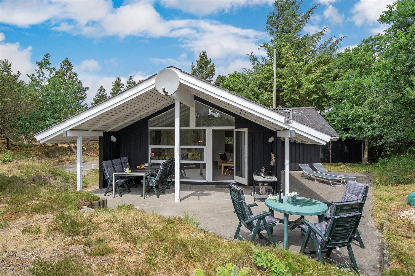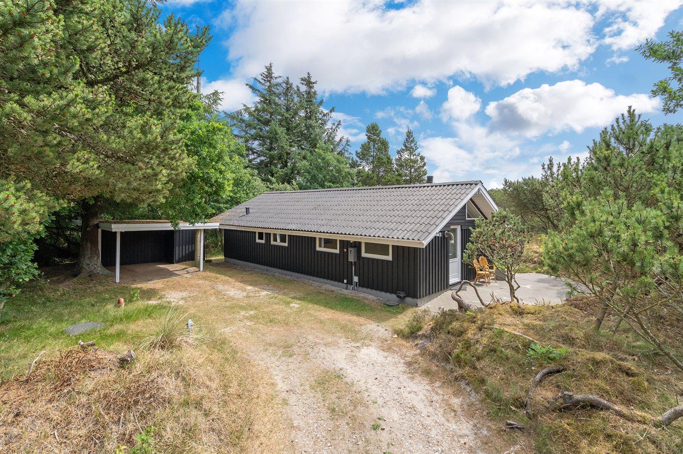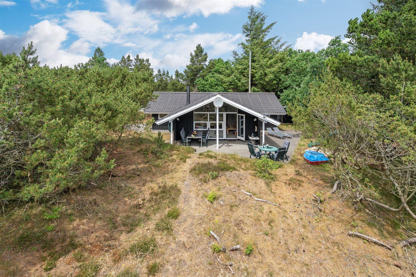 Dieses Ferienhaus aus Holz liegt auf einem ungestörten Naturgrundstück von hohen Tannen umgeben. Das Haus ist 1982 gebaut und 2002 mit neuem Badezimmer mit 2-Pers.-Whirlpool, Sauna und beheiztem Fußboden renoviert worden. Zum Haus gehören offene und überdachte Terrasse mit Gartenmöbeln. Die Wände sind mit Holz verkleidet und die Böden sind teils mit Teppich ausgelegt, teils mit Klinkern. Die Küche, die mit dem Wohnzimmer kombiniert ist, ist mit Geschirrspüler, Mikrowelle und Tiefkühlgerät ausgestattet. Im geräumigen und gut möblierten Wohnzimmer sind Kaminofen, Video, DVD-Spieler, TV mit digitalem Satellitenanschluss und Stereoanlage mit CD-Spieler vorh. Kostenlose ADSL-Internetverbindung (eigener Computer muss mitgebracht werden). Die 6 Schlafplätze verteilen sich auf 3 Zimmer, alle mit neuen Doppelbetten (2020). Waschmaschine, Wäschetrockner, Kinderhochstuhl, Carport, Sandkasten und Schaukel zur Verfügung. Dieses Haus wird zu jeder Jahreszeit einen guten Ausgangspunkt für einen gelungenen Urlaub an der Nordsee sein.