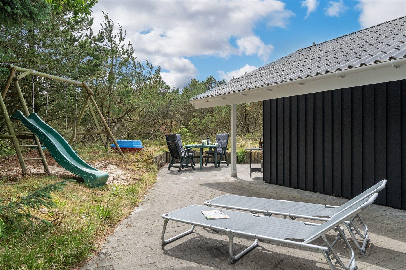 Gemütliches Holzferienhaus in Blåvand mit Sauna, Whirlpool und großem Naturgrundstück für entspannte Nordseeferien.
