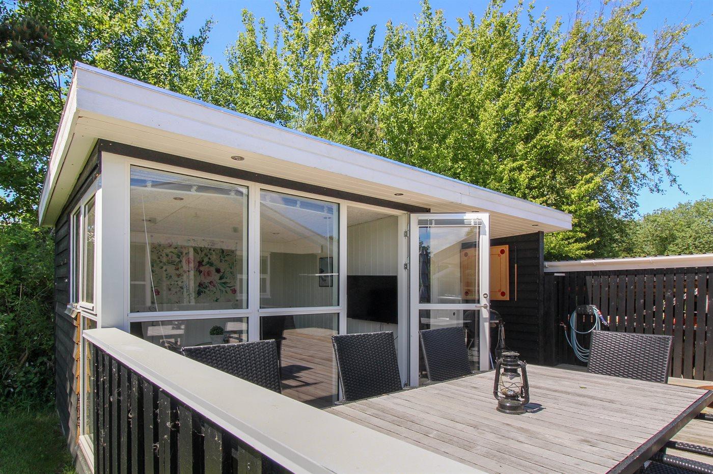 Dieses nette und gepflegte Ferienhaus liegt auf einem kinderfreundlichen Grundstück mit Platz für Ballspiele und andere Aktivitäten im Freien. Zum Haus gehört eine große, schöne und abgeschirmte Terrasse mit Gartenmöbeln.