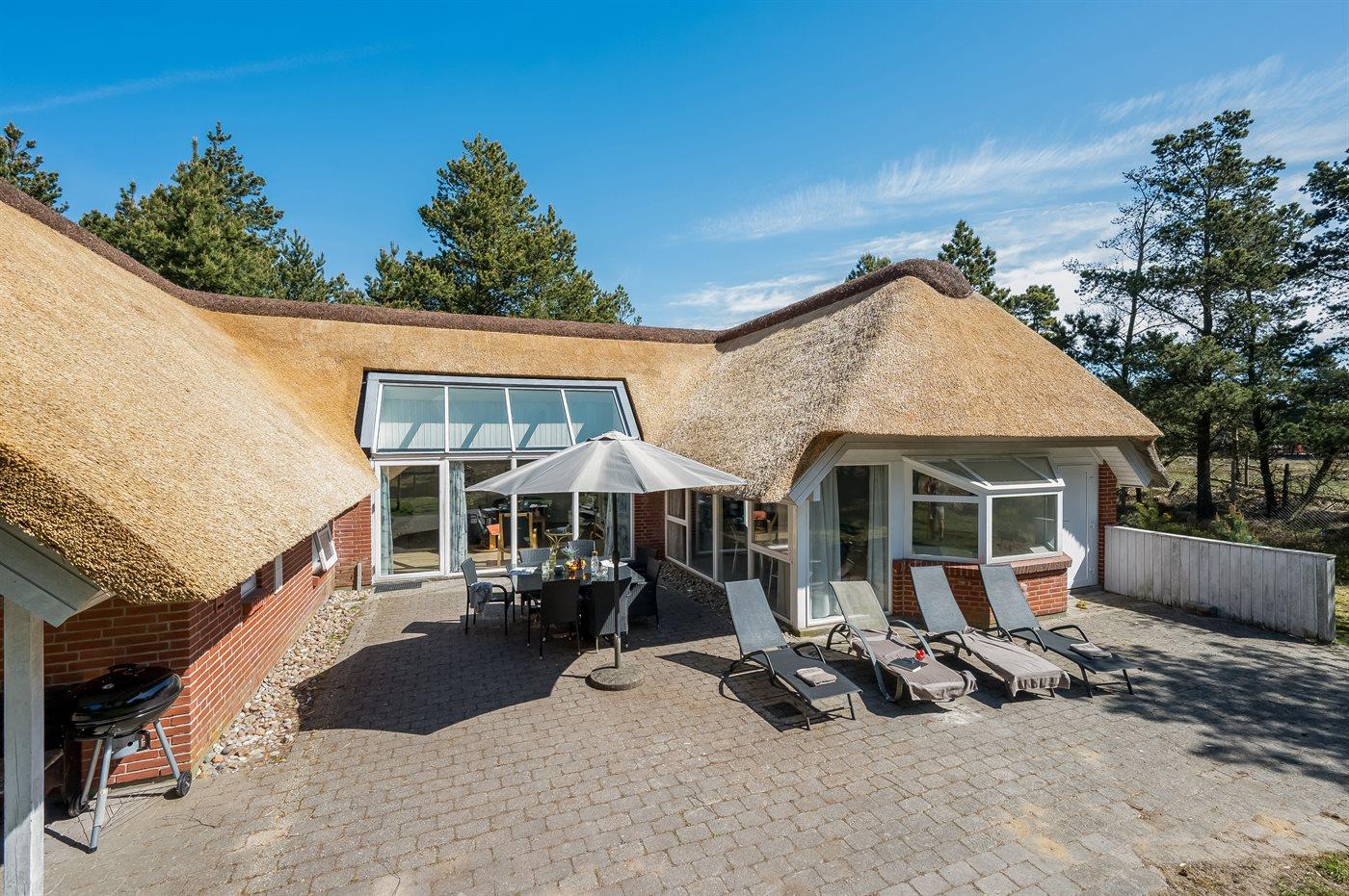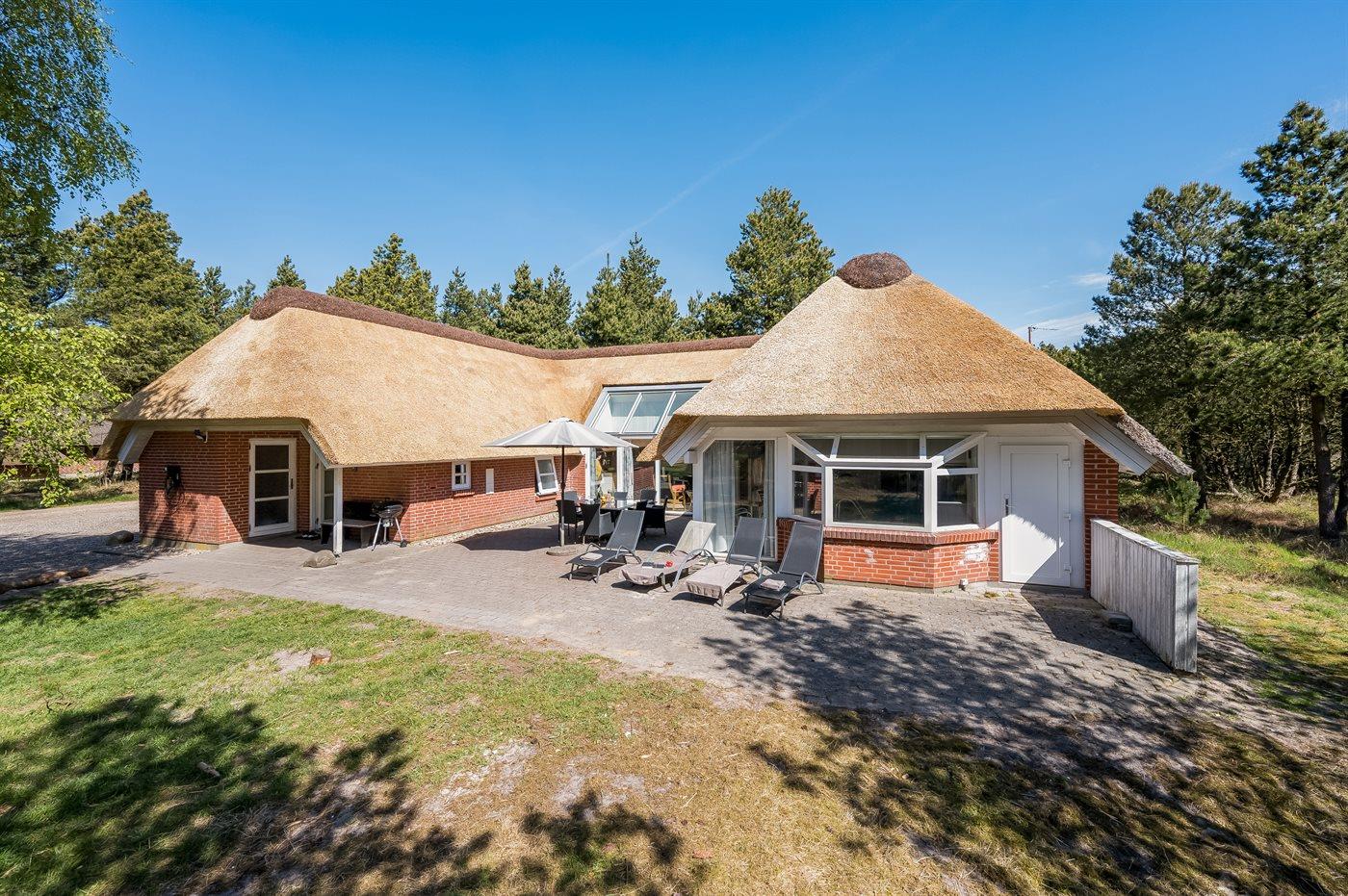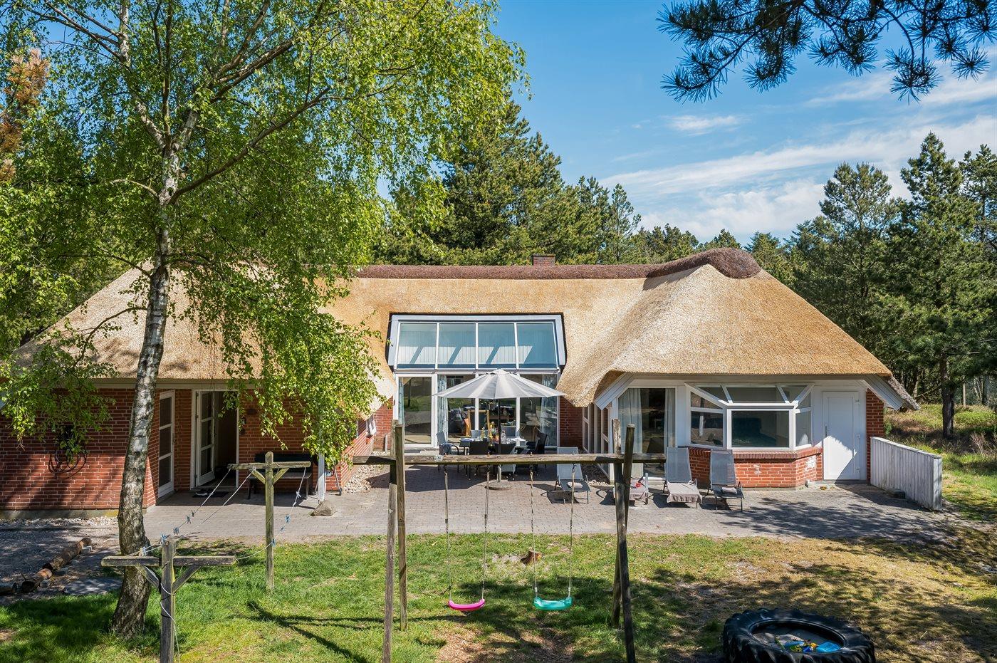 Dieses reetgedeckte Ferienhaus in Blåvand bietet Komfort, Sauna, Swimmingpool und liegt nur 700 m vom Strand entfernt.