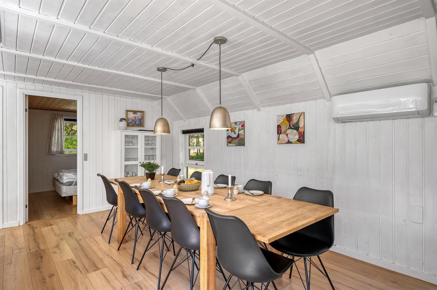Dieses schöne Ferienhaus mit Reetdach ist auf einem großen, geschlossenen Naturgrundstück, nur 700 m von einem der besten Badestrände Dänemarks entfernt gelegen. Zum Haus gehört ein ungestörtes, offenes Terrassenareal. Innen befinden sich 2 Schlafplätze im offenen Obergeschoss.