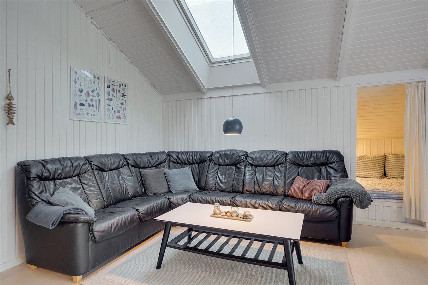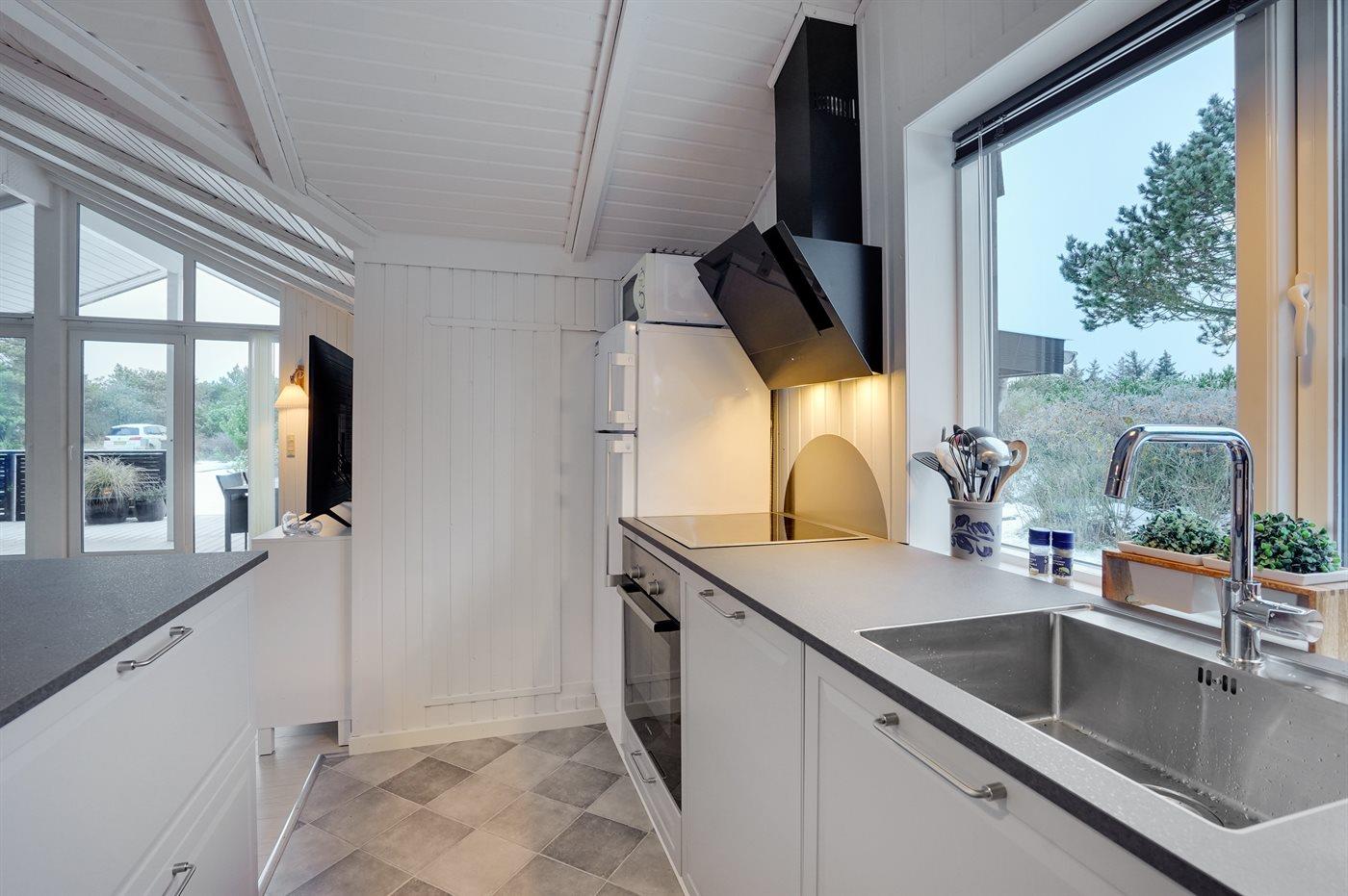 Die helle Küche ist mit dem Wohnzimmer kombiniert und u. a. mit Geschirrspüler, Kühlschrank, Tiefkühlmöglichkeit mit 40 Liter Nutzinhalt, Mikrowelle, 4 elektrische Kochplatten und Umluftofen ausgestattet. Im nett möblierten Wohnzimmer, mit Ausgang zu der überdachten Terrasse, finden Sie Kaminofen, 49” Fernseher, Chromecast, Playstation4, Bluetooth-Lautsprecher, DVD-Player, Radio und CD-Player. Mindestens 4 dänische, 1-3 schwedische, 1-3 norwegische und 1-3 deutsche Fernsehsender.