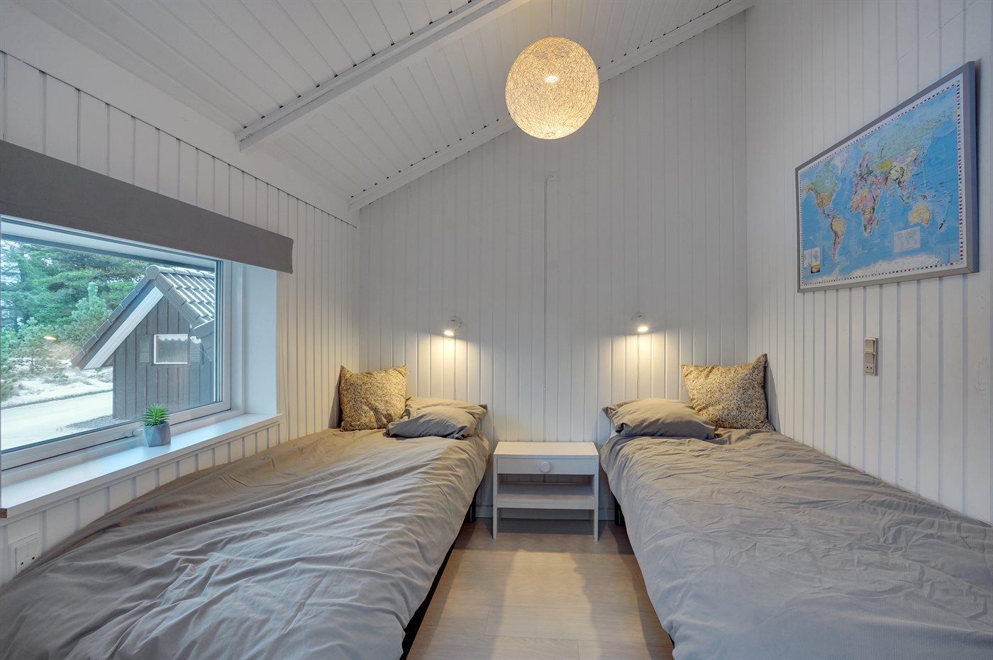 Die Schlafplätze verteilen sich auf 4 Zimmer; 1 mit Doppelbett und 3 mit je 2 Einzelbetten. Außerdem gibt es einen Alkoven mit 2 Schlafplätze im Wohnzimmer. Es gibt 2 schöne Badezimmer mit Fußbodenheizung und Duschnische. An weiterer Ausstattung können kostenlose, kabellose Internetverbindung, Waschmaschine, Wäschetrockner, Kinderbett sowie Kinderhochstuhl erwähnt werden und es ist eine energiesparende Wärmepumpe installiert.