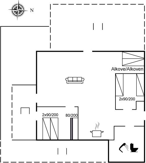 Die Schlafplätze verteilen sich auf 2 Schlafräume. 2 Schlafplätze in einem Doppelbett. 2 Schlafplätze in Einzelbetten. 2 Schlafplätze in einem Etagenbett.2 Schlafplätze im Alkoven. Ferner steht ein Kinderbett zur Verfügung.
