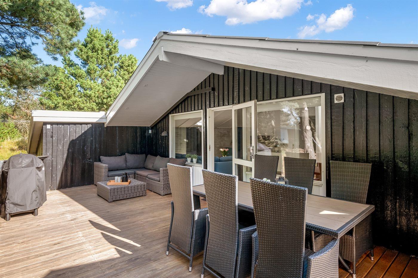 Dieses herrliche und geschmackvoll eingerichtete Ferienhaus liegt auf einem großen Grundstück in dem attraktiven Feriengebiet Blåvand. Zum Haus gehört eine schöne und zum Teil abgeschirmte Terrassenfläche mit guten Gartenmöbeln und Weber-Gasgrill.