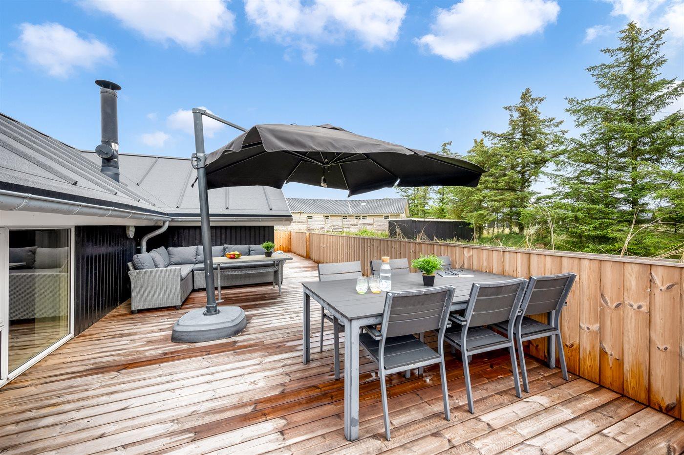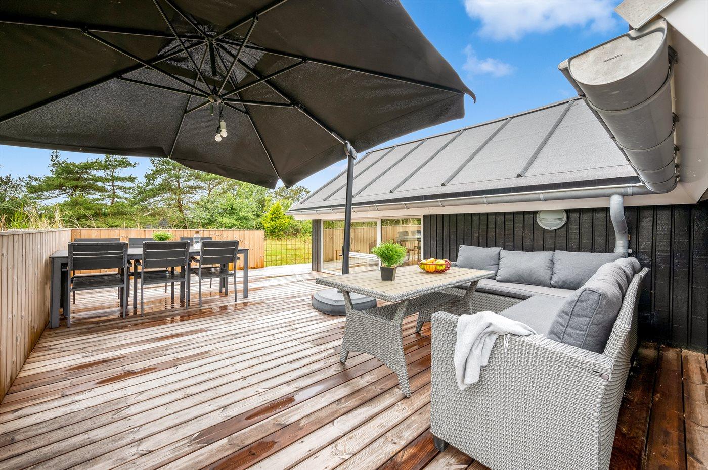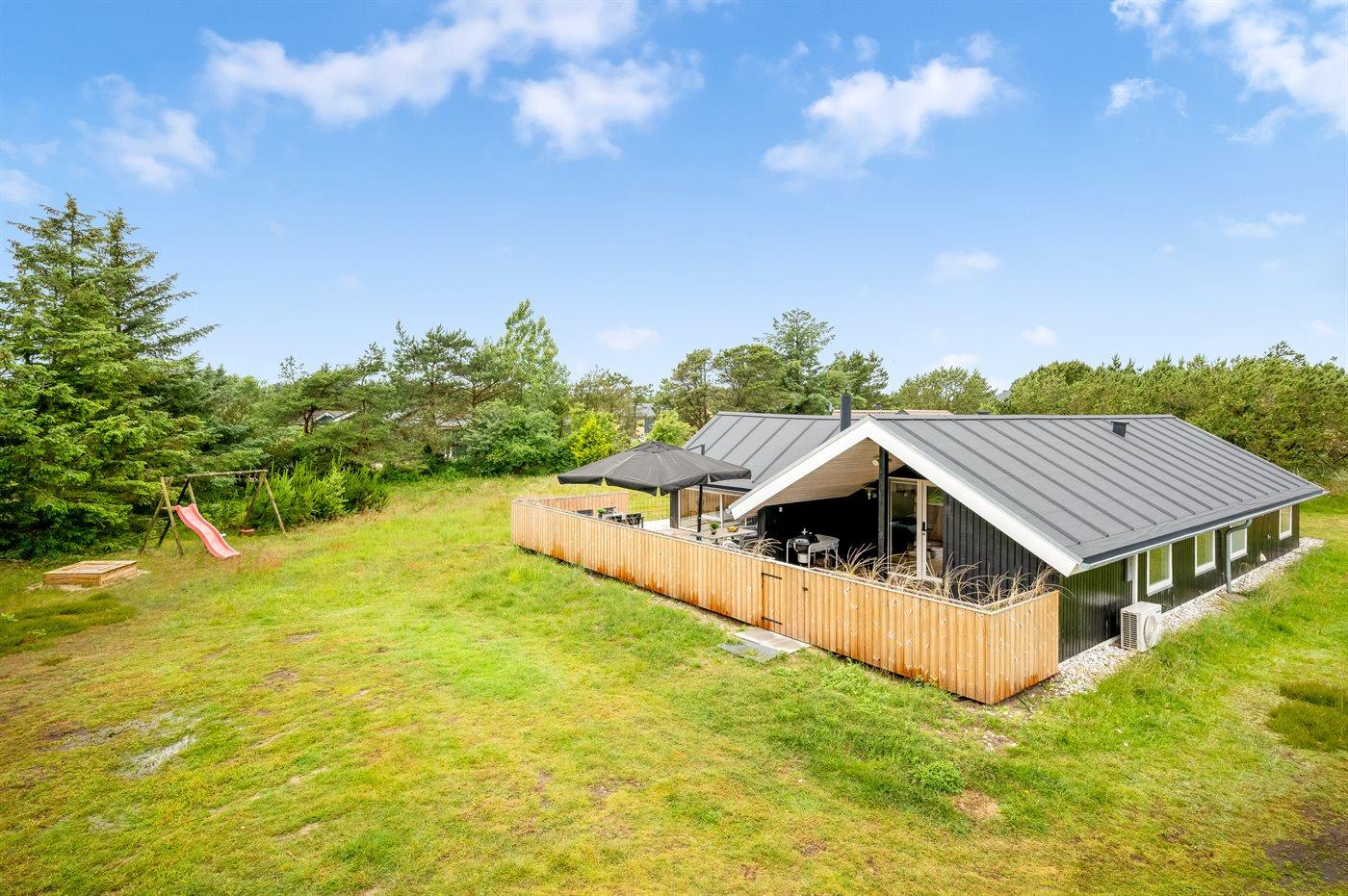 Modernes Ferienhaus in Blåvand mit großer Terrasse und viel Platz für Outdoor-Aktivitäten.