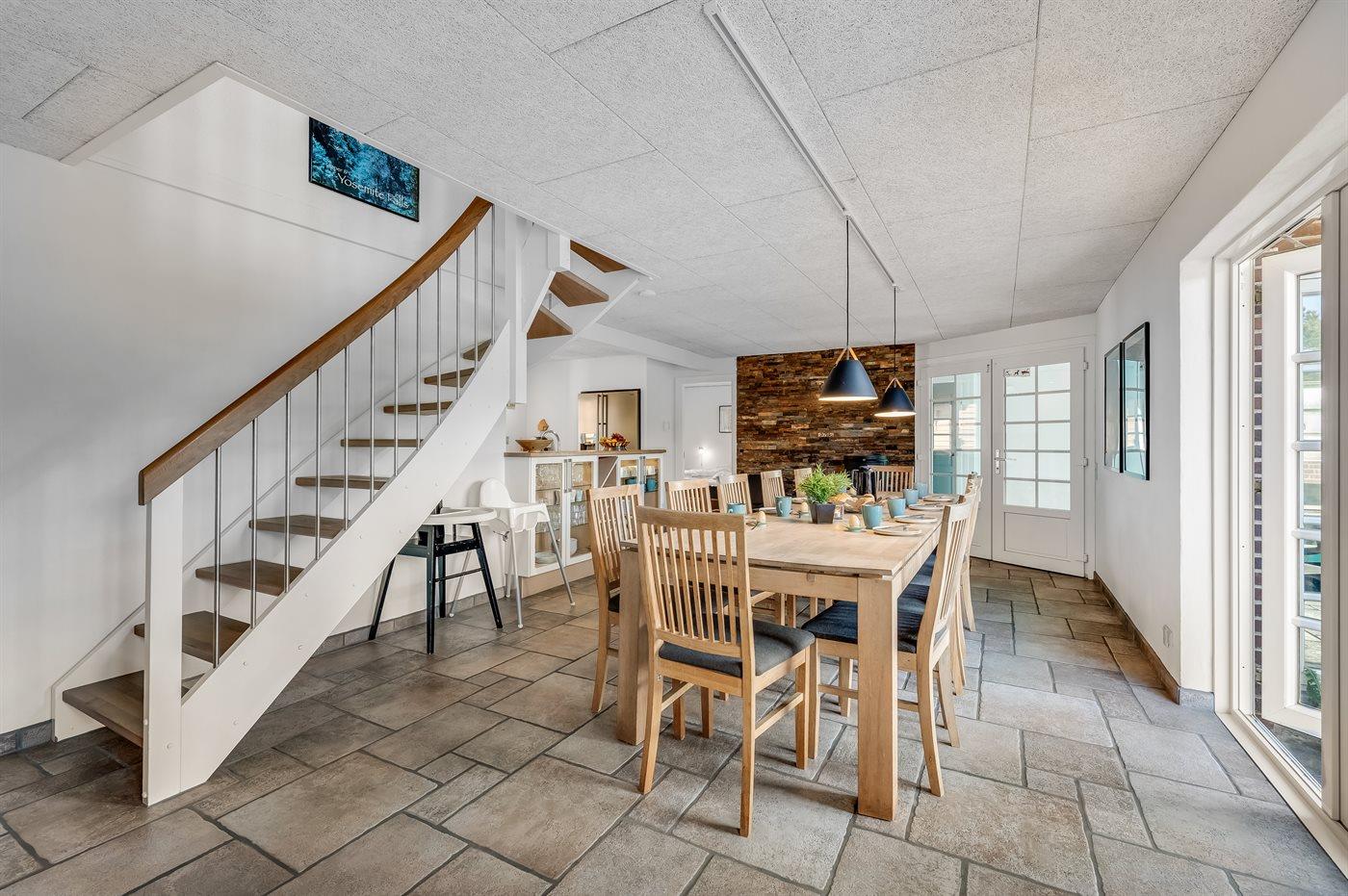 Das Ferienhaus eignet sich für 14 Personen sowie 1 Kleinkind bis zu 3 Jahren. Die Ferienunterkunft hat eine Wohnfläche von 250 m², ist 2-stöckig, und wurde 1992 gebaut. 2016 wurde die Ferienunterkunft renoviert. m Jahr 2021 wurde ein Gästehaus mit Aktivitätsraum und offenem Obergeschoss gebaut. Es ist erlaubt 1 Haustier mitzubringen. Die Ferienunterkunft ist mit energiesparender Wärmepumpe ausgestattet. Es gibt Erdwärme. Fußbodenheizung in allen Klinkerböden. Die Ferienunterkunft ist mit Waschmaschine ausgestattet. Wäschetrockner. Tiefkühlmöglichkeit mit 170 Liter Nutzinhalt. Es gibt außerdem einen Kaminofen. Für die jüngsten Feriengäste ist 1 Kinderhochstuhl vorhanden. Wickeltisch.