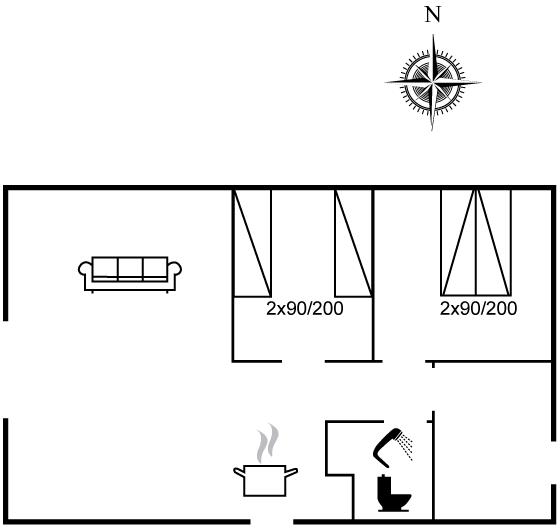 Die Schlafplätze verteilen sich auf 2 Schlafräume. 2 Schlafplätze in einem Doppelbett. 2 Schlafplätze in Einzelbetten.