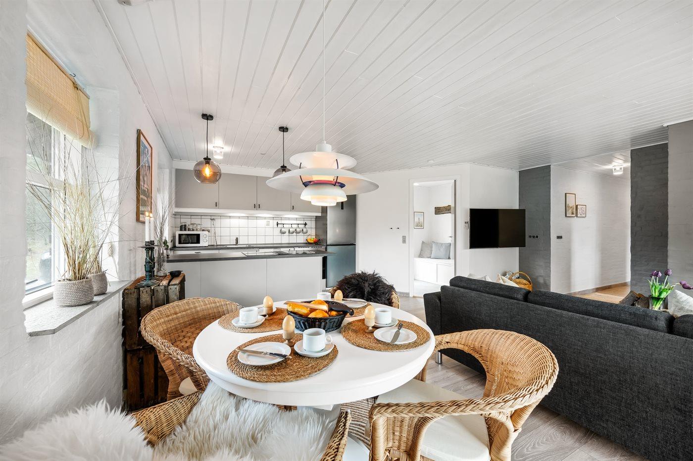 Die Küche grenzt offen an Ess- und Wohnzimmer an. Ein gemütliches Ferienhaus für 4 Personen, die sich eine zentrale Lage und gleichzeitig Ruhe wünschen.