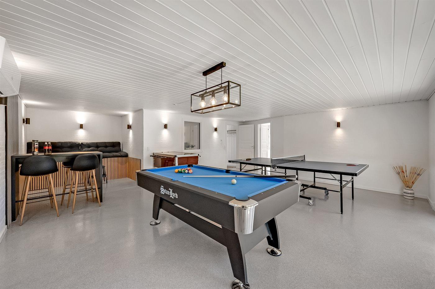 Hobbyraum mit: Pooltisch. Tischtennis. Tischfußball.