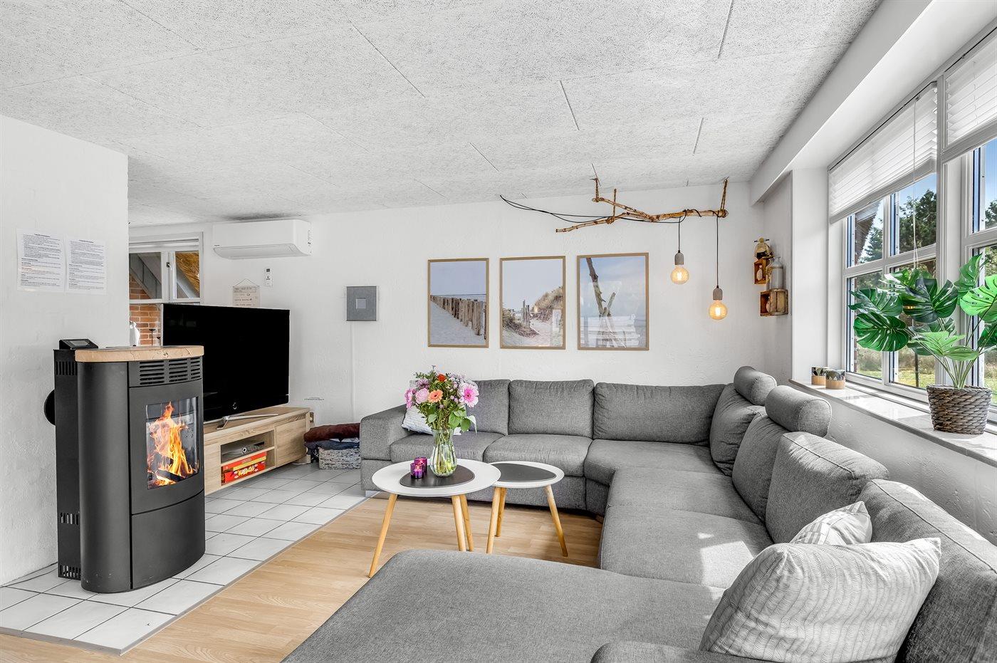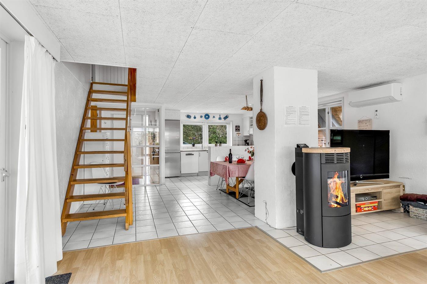 Das Haus hat eine offene Küche, die direkt an den Ess- und Wohnbereich angrenzt. Hier ist ausreichend Platz für gemeinsame Zeit mit der ganzen Familie. Im Wohnzimmer gibt es einen Holzpelletsofen, der an kühleren Urlaubstagen für Wärme und Gemütlichkeit sorgt. Ein Gesellschaftsspiel vor dem knisternden Feuer ist nur eine von vielen Möglichkeiten, die im Haus auf Sie warten. Bringen Sie also gerne Ihre Lieblingsspiele mit. Ferner steht es 1 Fernseher mit Smart-TV,1 Chromecast und 1 Bluetooth-Lautsprecher zur Verfügung.