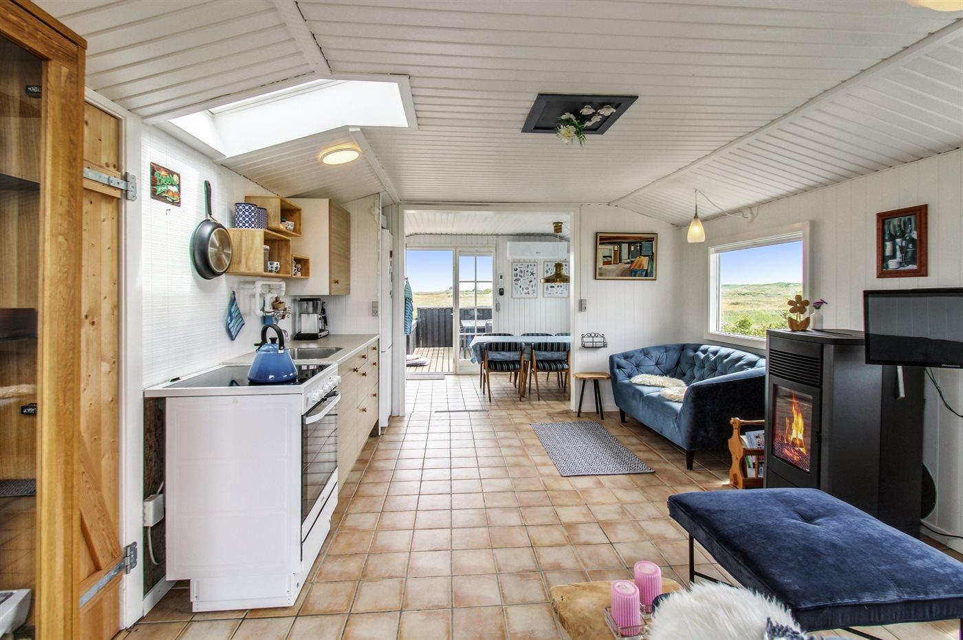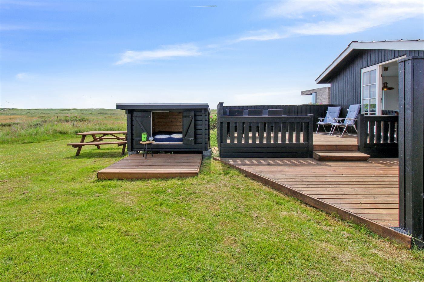 Schöne Lage direkt an offenen Flächen und nur 100 Meter vom Strand entfernt. Wenn man Ruhe und Frieden sucht, ist dieses Ferienhaus genau das Richtige. Das Haus verfügt über 2 schöne Terrassen, auf denen man immer Schutz vor Wind und Sonne findet. Auf dem Grundstück befindet sich auch ein Unterstand, sodass man auch im Freien schlafen kann, falls man das möchte. Das Haus strahlt eine typische Sommerhaus-Atmosphäre aus und bietet alles, was man für einen herrlichen Urlaub benötigt.
