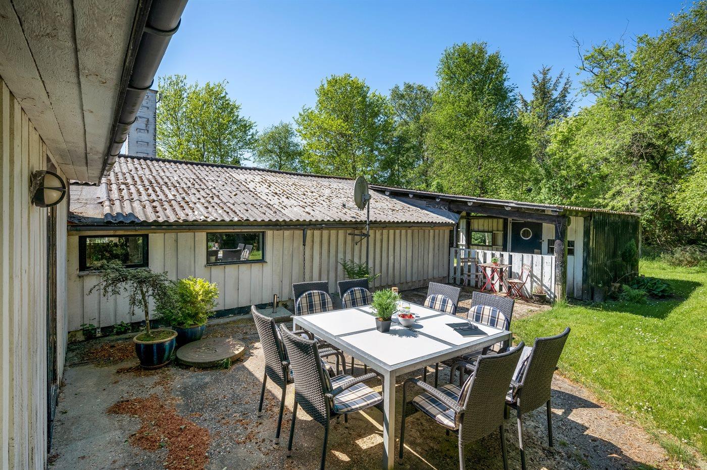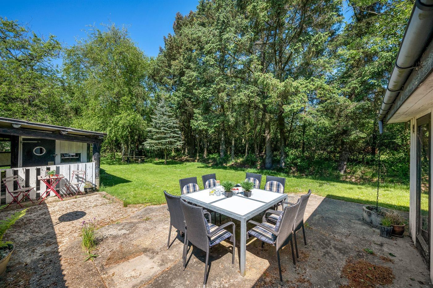Die Ferienunterkunft liegt auf einem 1500 m² großen Naturgrundstück. Die Entfernung zum Meer beträgt 800 m. Die nächste Einkaufsmöglichkeit liegt 300 m entfernt. Es steht ein offenes Terrassenareal zur Verfügung. Außerdem gibt es überdachte Terrasse. Geräteraum. Schaukel. Sandkasten. Rutsche. Es steht ein Grill zur Verfügung. Es steht ein Carport zur Verfügung. Parkplatz auf dem Grundstück.