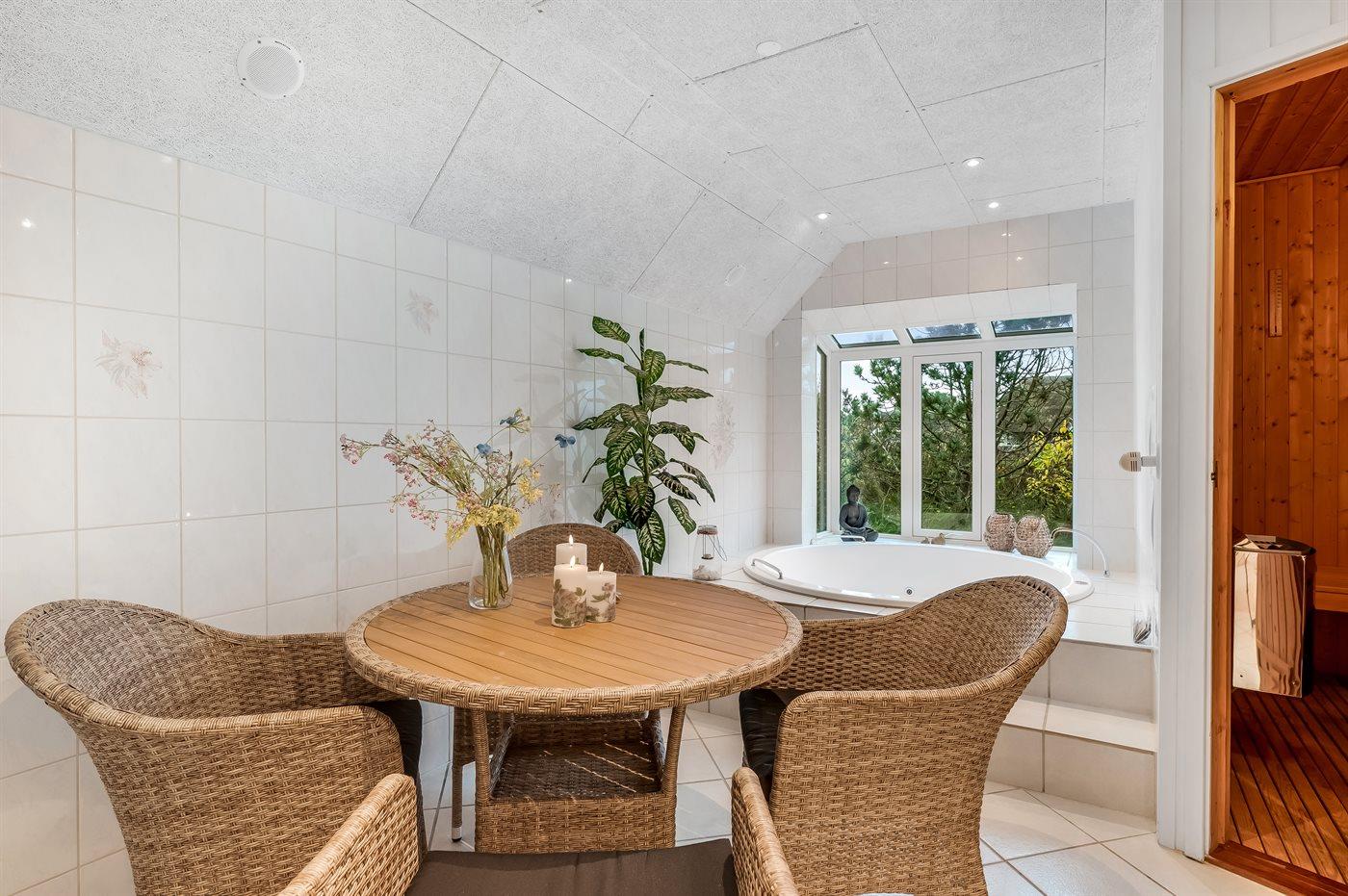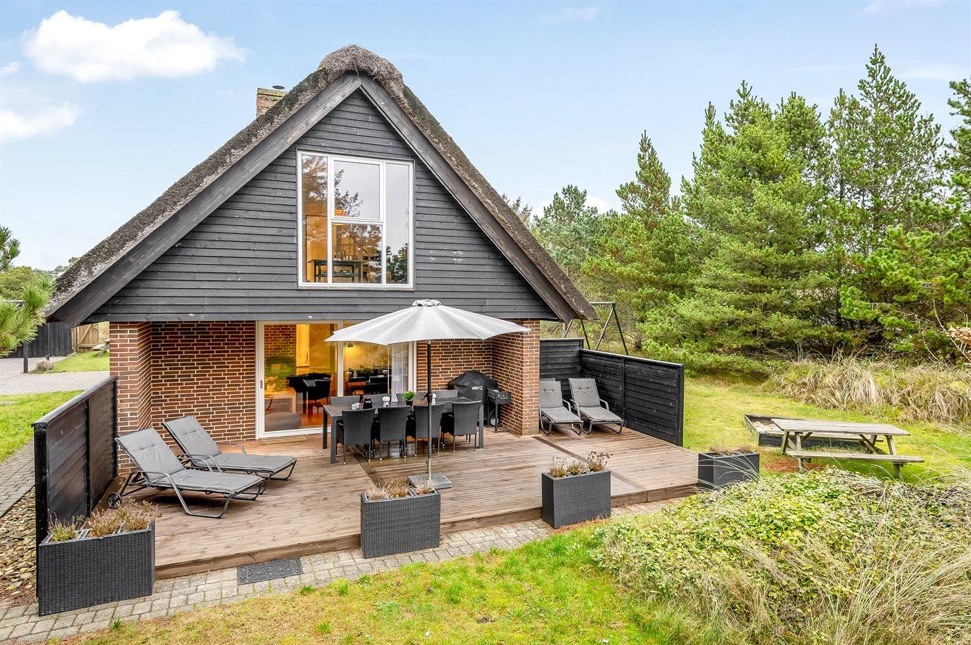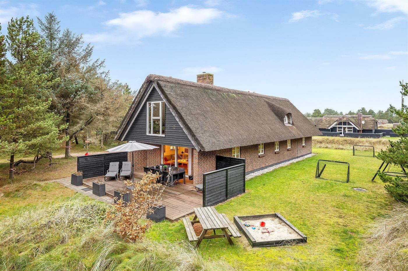 Modernisiertes Reetdach-Ferienhaus mit Sauna, Whirlpool und privatem Waldspielplatz in Blåvand.