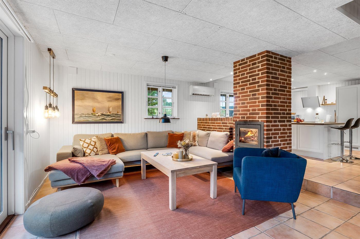 In der gemütlichen Ferienhaussiedlung ”Solhaven” in Blåvand liegt dieses Ferienhaus mit Reetdach und einem schönen privaten Waldspielplatz. Im Inneren bietet das Haus eine Vielzahl an Einrichtungen für die ganze Familie – ganz gleich, ob du gemütliche Stunden in den weichen Couchen verbringen oder Videospiele auf der Konsole spielen möchtest. Das Haus wurde modernisiert und verfügt über einen schönen Küchen-Wohnbereich, in dem sich alle versammeln können. Während das leckere Essen zubereitet wird, kann das Kochteam der Familie die Aktivitäten im restlichen Erdgeschoss problemlos verfolgen. Das Obergeschoss ist geschmackvoll eingerichtet, unter anderem mit Akustikpaneelen.