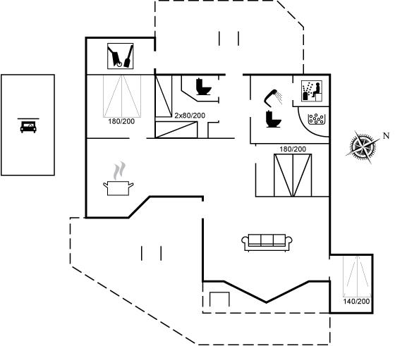 Das Haus verfügt über 4 Schlafräume, die sich auf 4 Schlafplätze in Doppelbetten, 2 Schlafplätze in Einzelbetten und 2 Schlafplätze auf einer Doppelschlafcouch in der Alkove verteilen.