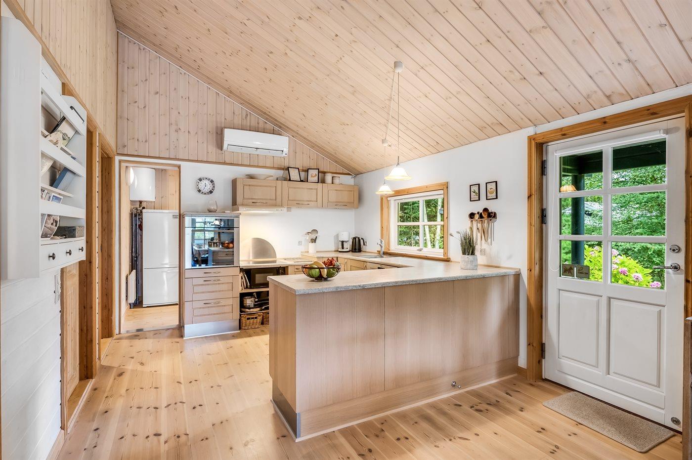 Das Ferienhaus ist mit einer Wohnküche, einem großen Badezimmer, zwei Schlafzimmern sowie einem Gästehaus mit zwei Schlafplätzen ausgestattet. Es gibt eine nach Westen ausgerichtete, abgeschlossene Terrasse.