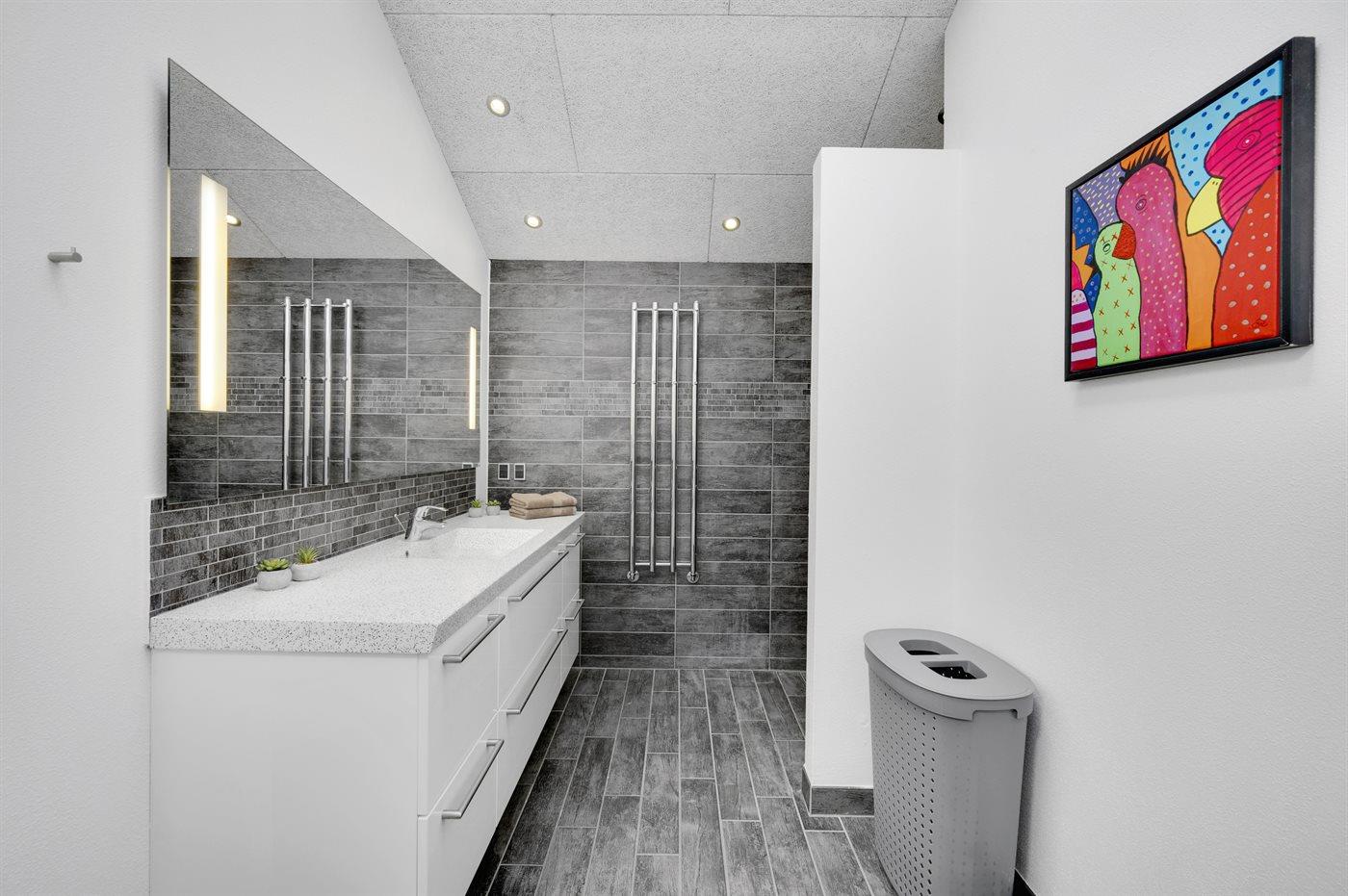 Es gibt 2 Badezimmer mit Duschnische . Fußbodenheizung in 2 Badezimmern.