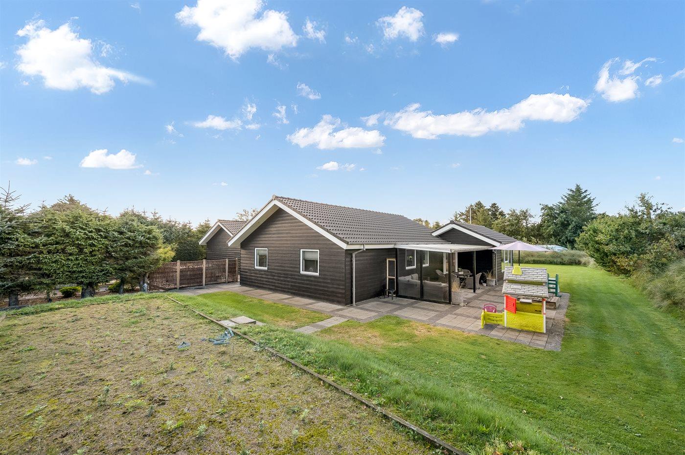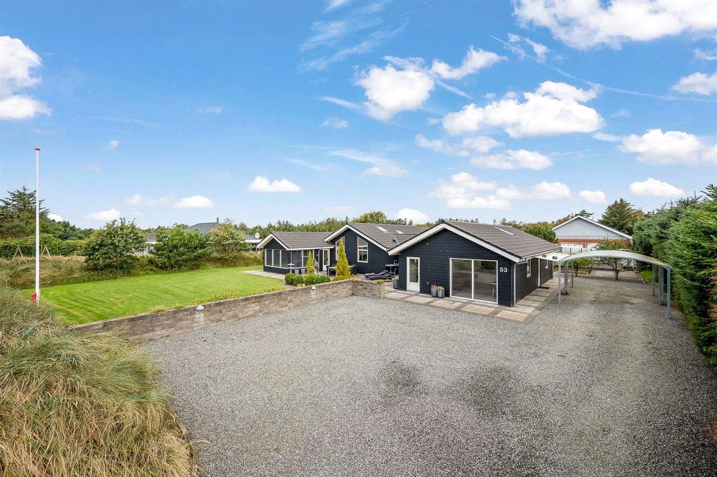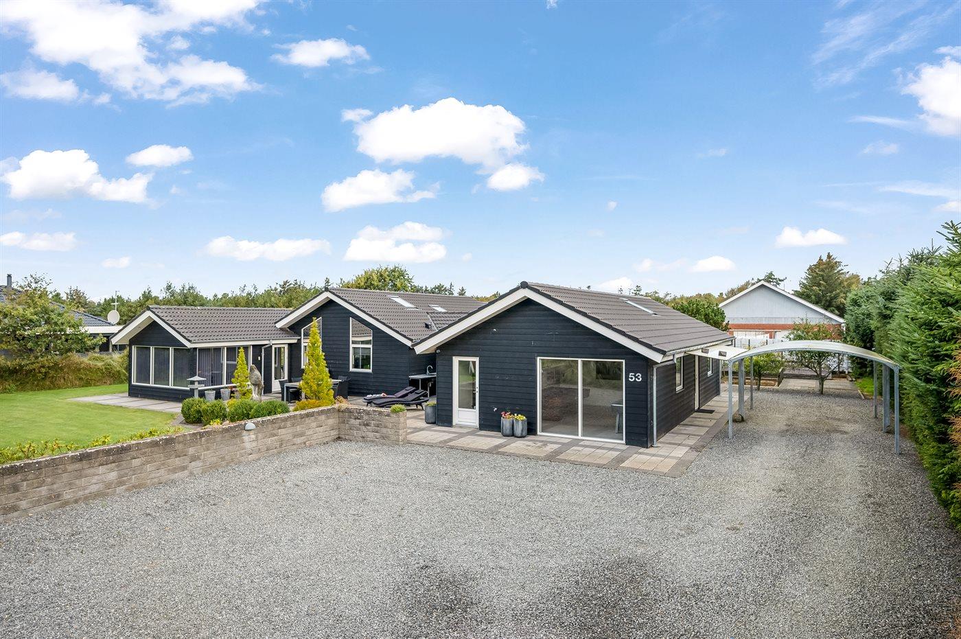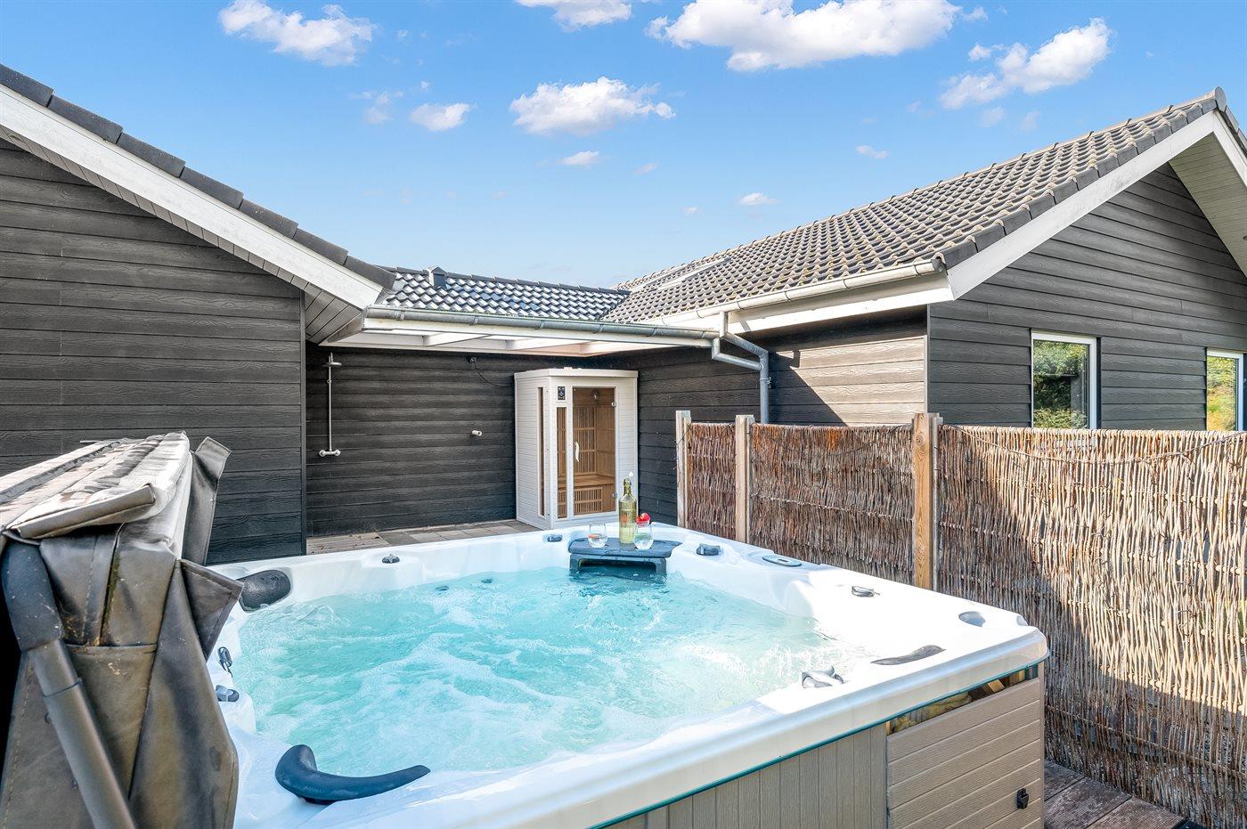 Ein zentral gelegenes Ferienhaus in der Nähe von Strand und Stadt. Das Ferienhaus ist sowohl für einen aktiven Urlaub als auch für pure Entspannung geeignet, da es sowohl einen großen Aktivitätsraum als auch eine schöne, große und teilweise überdachte Terrassenfläche mit einem 6-Personen-Außenwhirlpool (Standwasser) und einer Außensauna gibt.