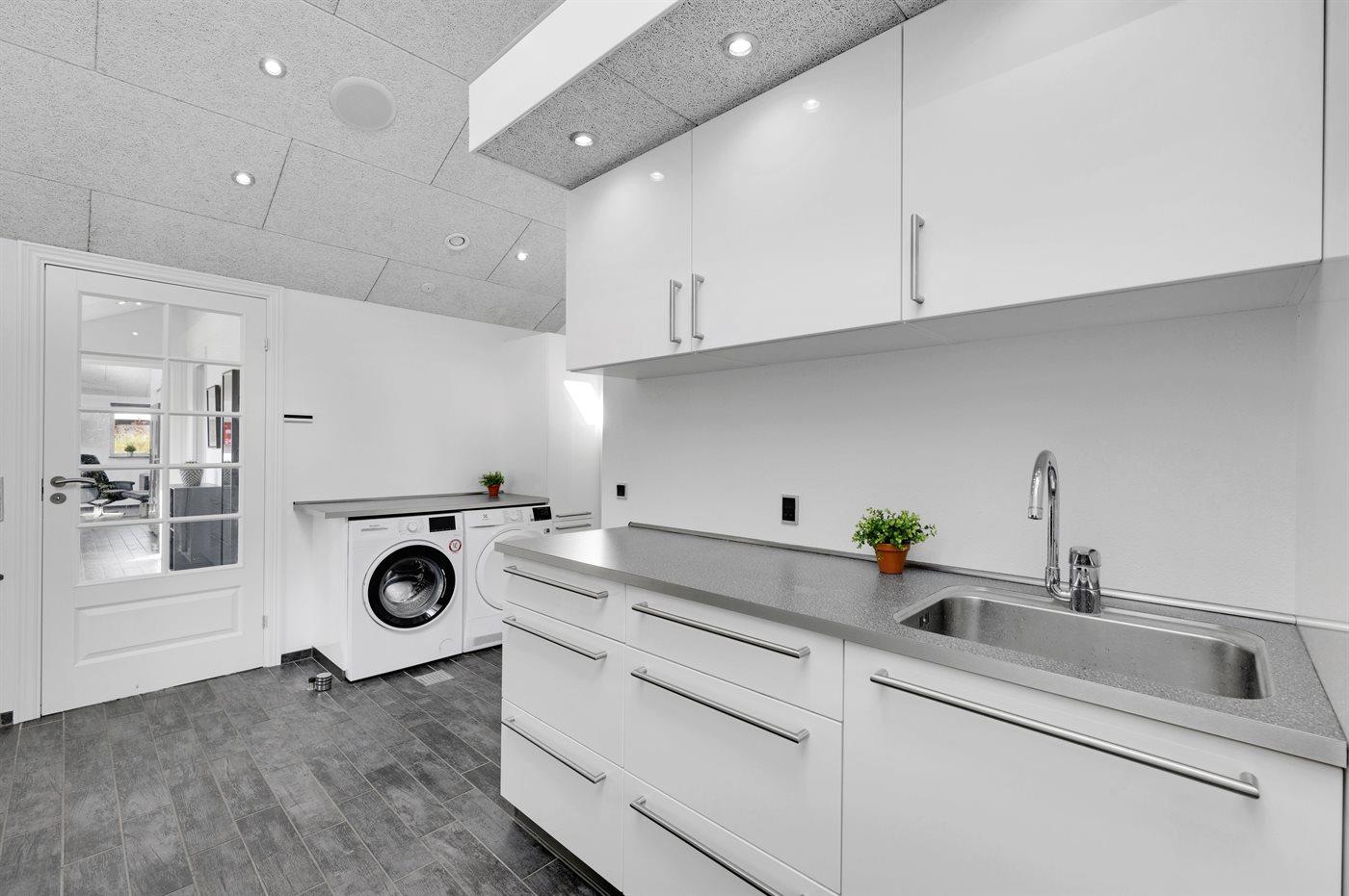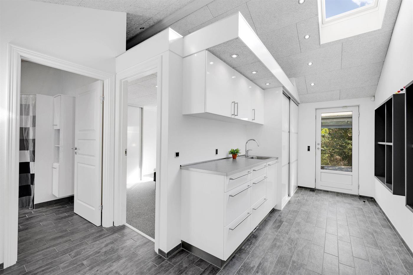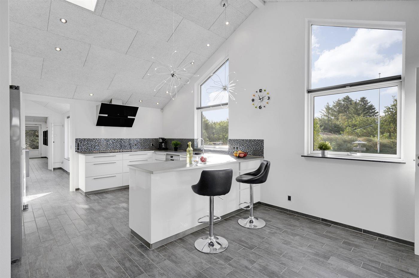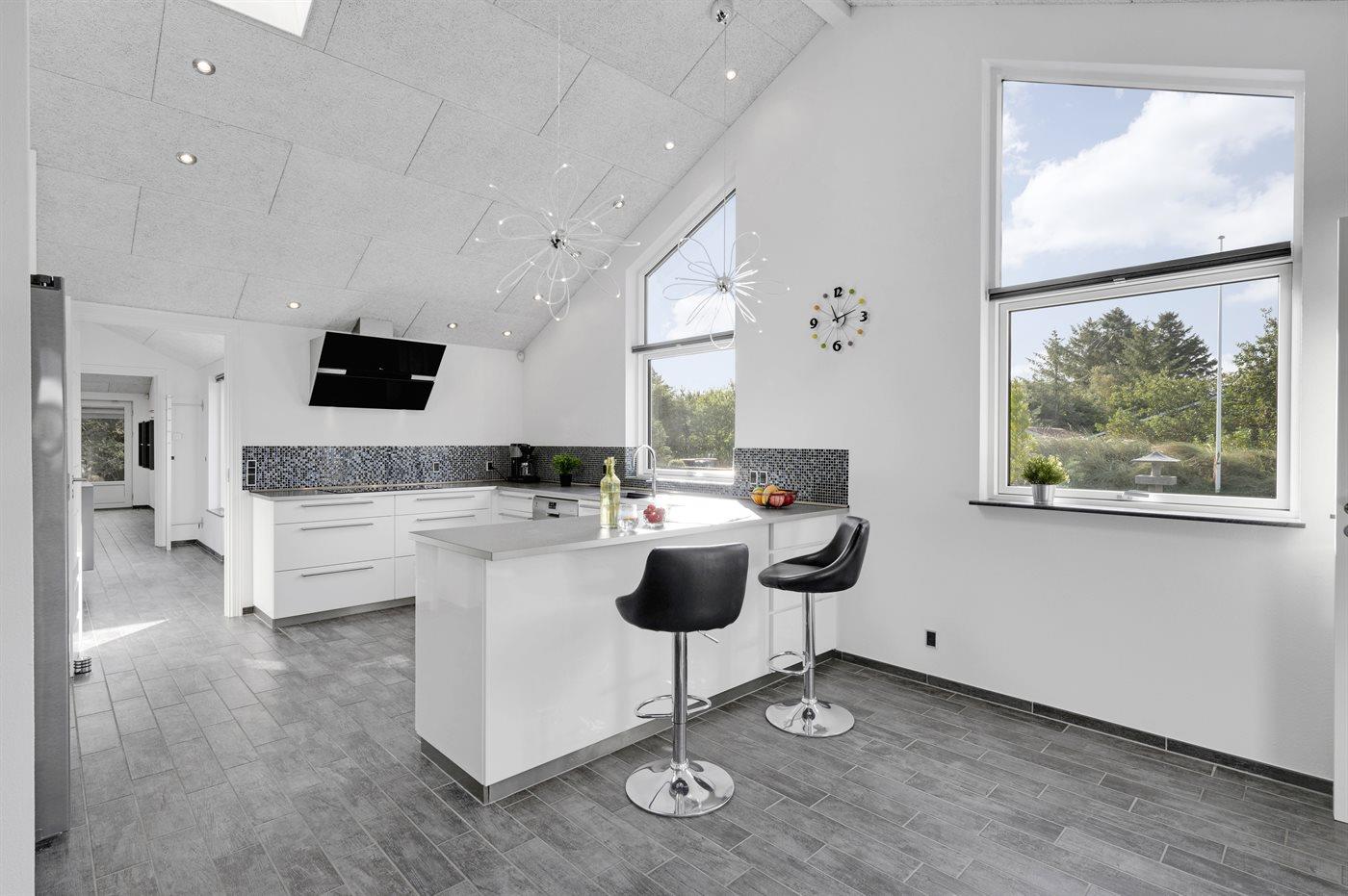 Ein zentral gelegenes Ferienhaus in der Nähe von Strand und Stadt. Das Ferienhaus ist sowohl für einen aktiven Urlaub als auch für pure Entspannung geeignet, da es sowohl einen großen Aktivitätsraum als auch eine schöne, große und teilweise überdachte Terrassenfläche mit einem 6-Personen-Außenwhirlpool (Standwasser) und einer Außensauna gibt.