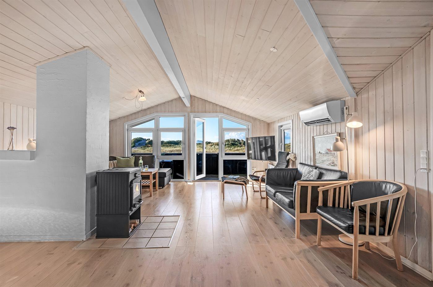 Das Ferienhaus liegt auf einem großen Natur-/Dünengrundstück, etwa 50 Meter von einem der besten Badestrände Dänemarks entfernt. Auch vom Grundstück des Hauses aus hast du Meerblick.