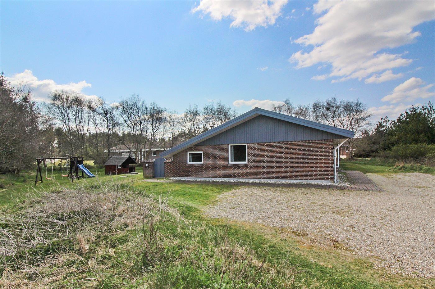 Die Ferienunterkunft liegt auf einem 1800 m² großen Naturgrundstück. Die Entfernung zum Meer beträgt 3000 m. Die Entfernung zum Fjord beträgt 500 m. Die nächste Einkaufsmöglichkeit liegt 7500 m entfernt. In einem Abstand von 500 m gibt es einen Golfplatz. Es steht ein 38 m² Terrassenareal zur Verfügung. Davon insgesamt 35 m² geschlossene Terrasse. Geräteraum. Schaukel. Sandkasten. Kinderspielhaus. Spielturm. Rutsche. Parkplatz auf dem Grundstück.