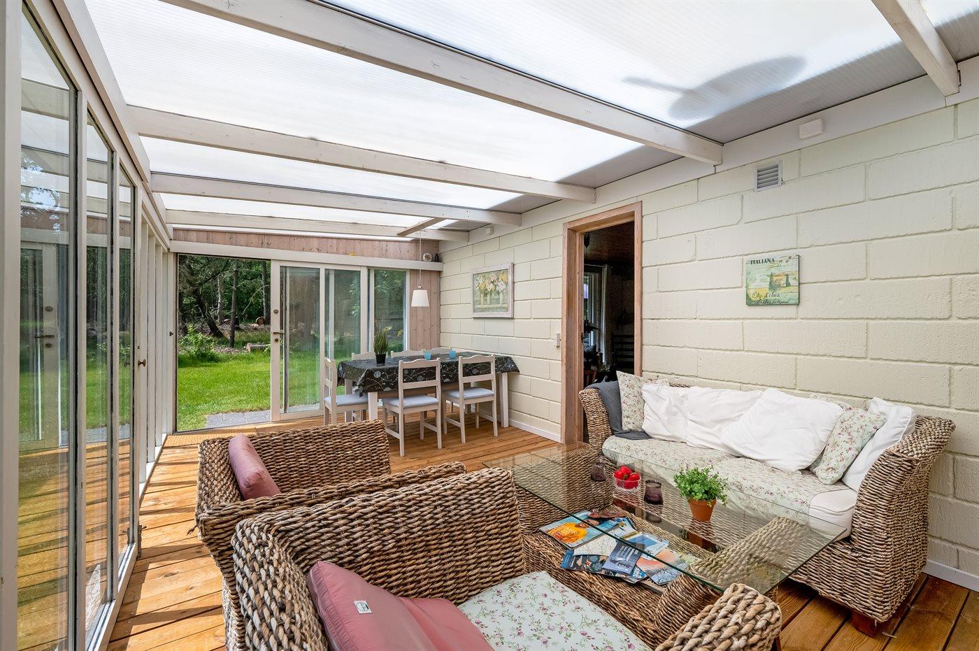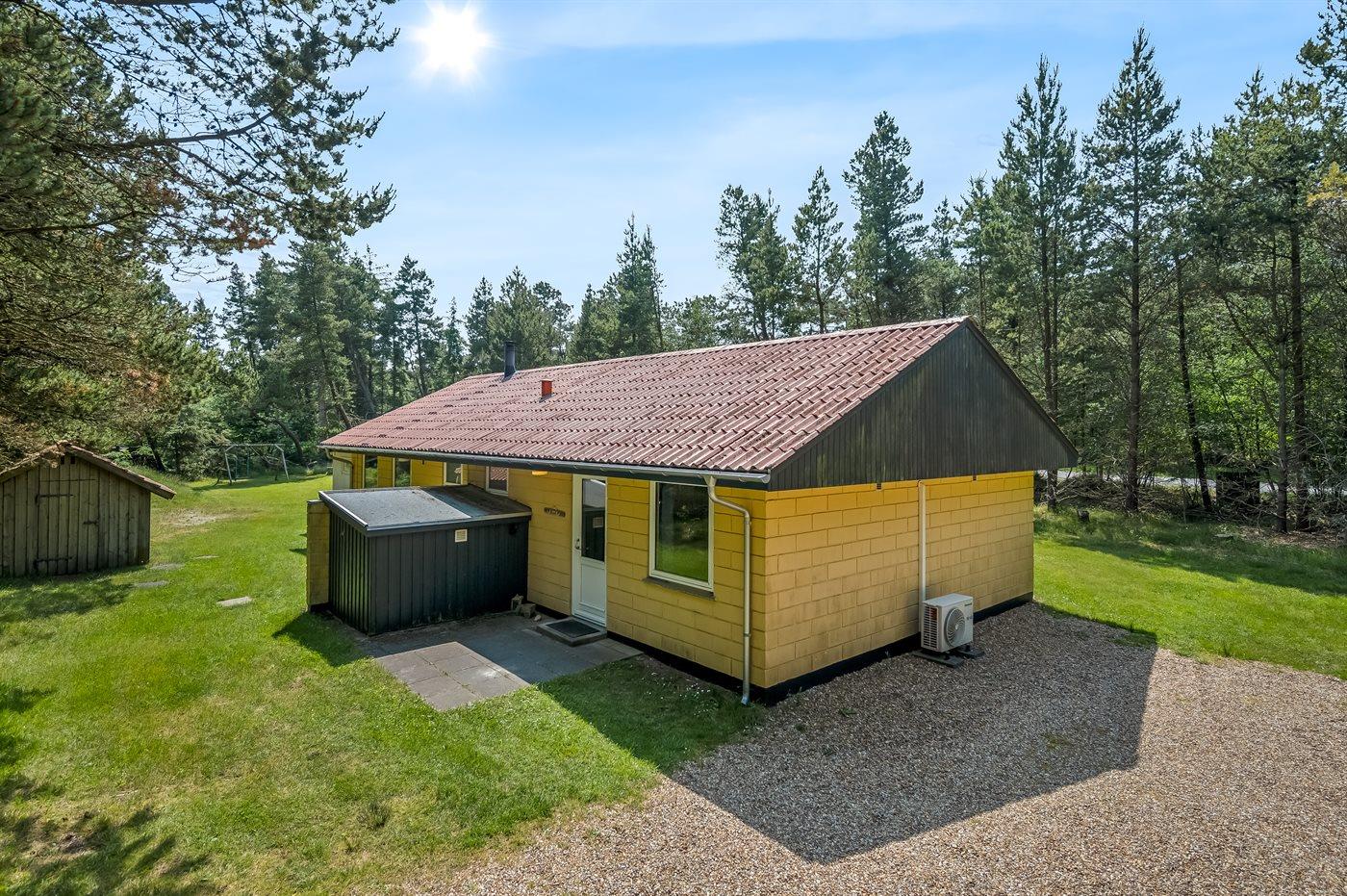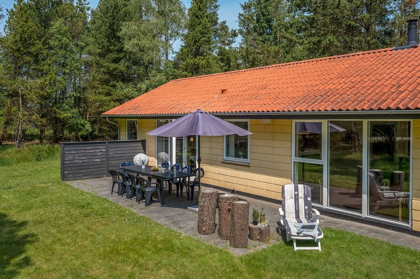 Das Ferienhaus liegt in einer naturschönen und ruhigen Gegend auf einem großen Grundstück, das von einer Rasenfläche umgeben ist – ideal für Aktivitäten im Freien. Es gibt Fußballtore, einen Basketballkorb, Schaukeln und einen Sandkasten.