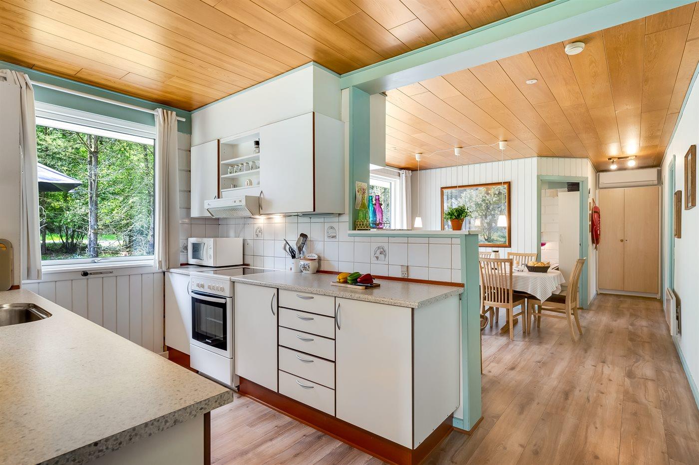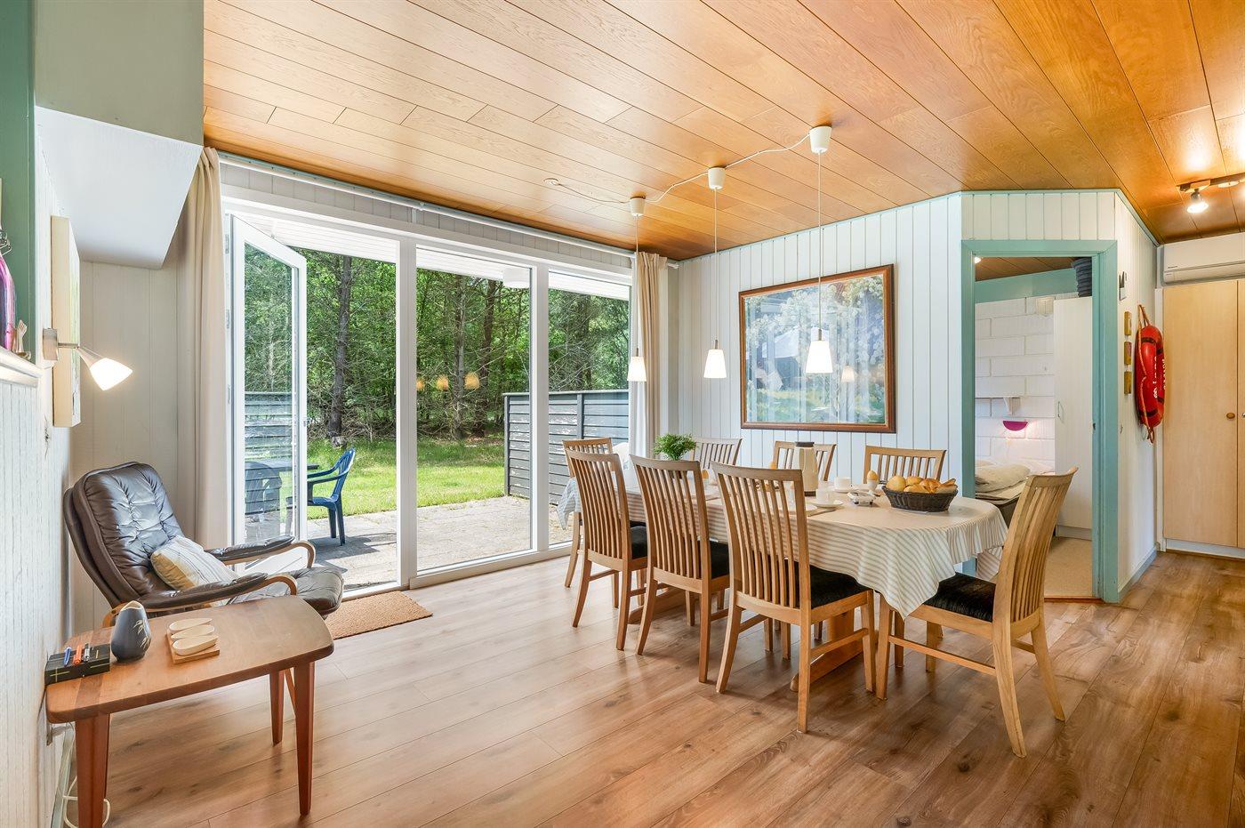 Das Ferienhaus eignet sich für 8 Personen. Die Ferienunterkunft hat eine Wohnfläche von 122 m² und wurde 1974 gebaut. 1994 wurde die Ferienunterkunft teilweise renoviert. Es ist erlaubt 1 Haustier mitzubringen. In der Ferienunterkunft ist eine energiesparender Luft zu Luft Wärmepumpe installiert. Die Ferienunterkunft ist mit Waschmaschine ausgestattet. Tiefkühlmöglichkeit mit 60 Liter Nutzinhalt. Es gibt außerdem einen Kaminofen.