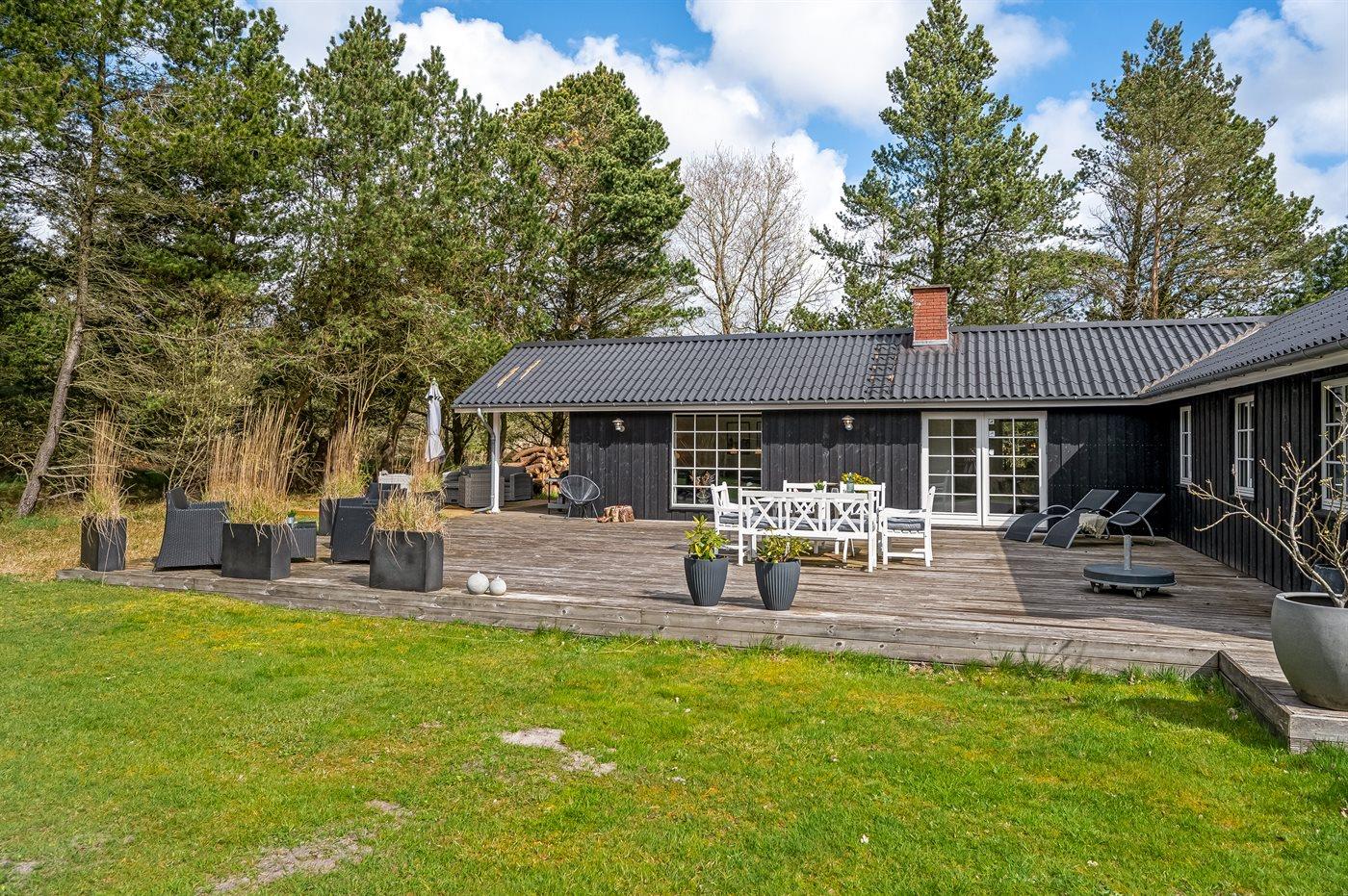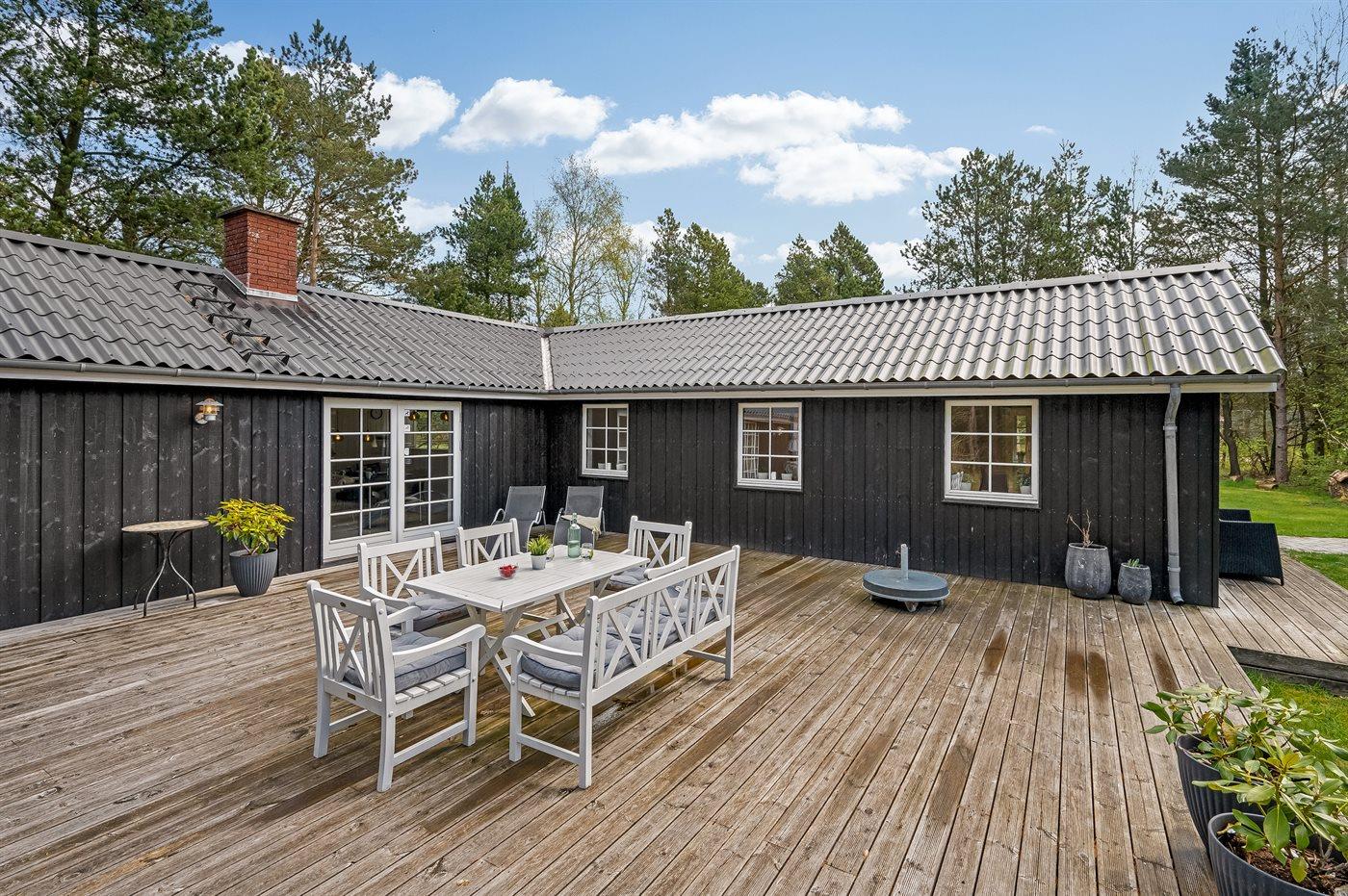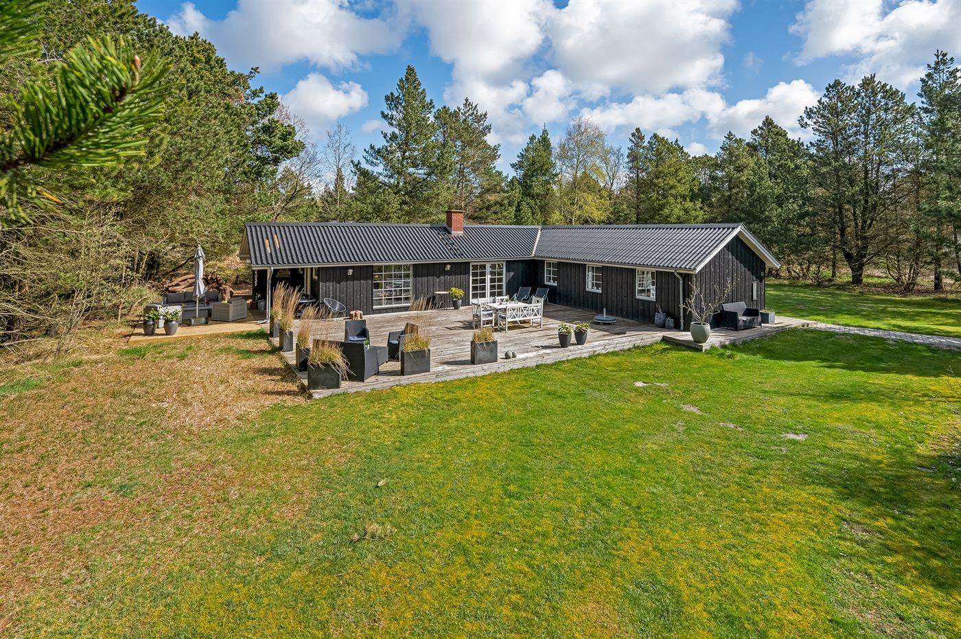 Ein besonders schönes und geräumige Ferienhaus mit heller und gemütlicher Einrichtung. Das Haus liegt in ruhiger Umgebung - auf einem großen und abgeschirmten Grundstück mit Platz für Ballspiele und andere Aktivitäten im Freien. Zum Haus gehören schöne, große Terrassen sowie ein großes Gästehaus, das mit Spielzimmer sowie Badezimmer mit Toilette eingerichtet ist.
