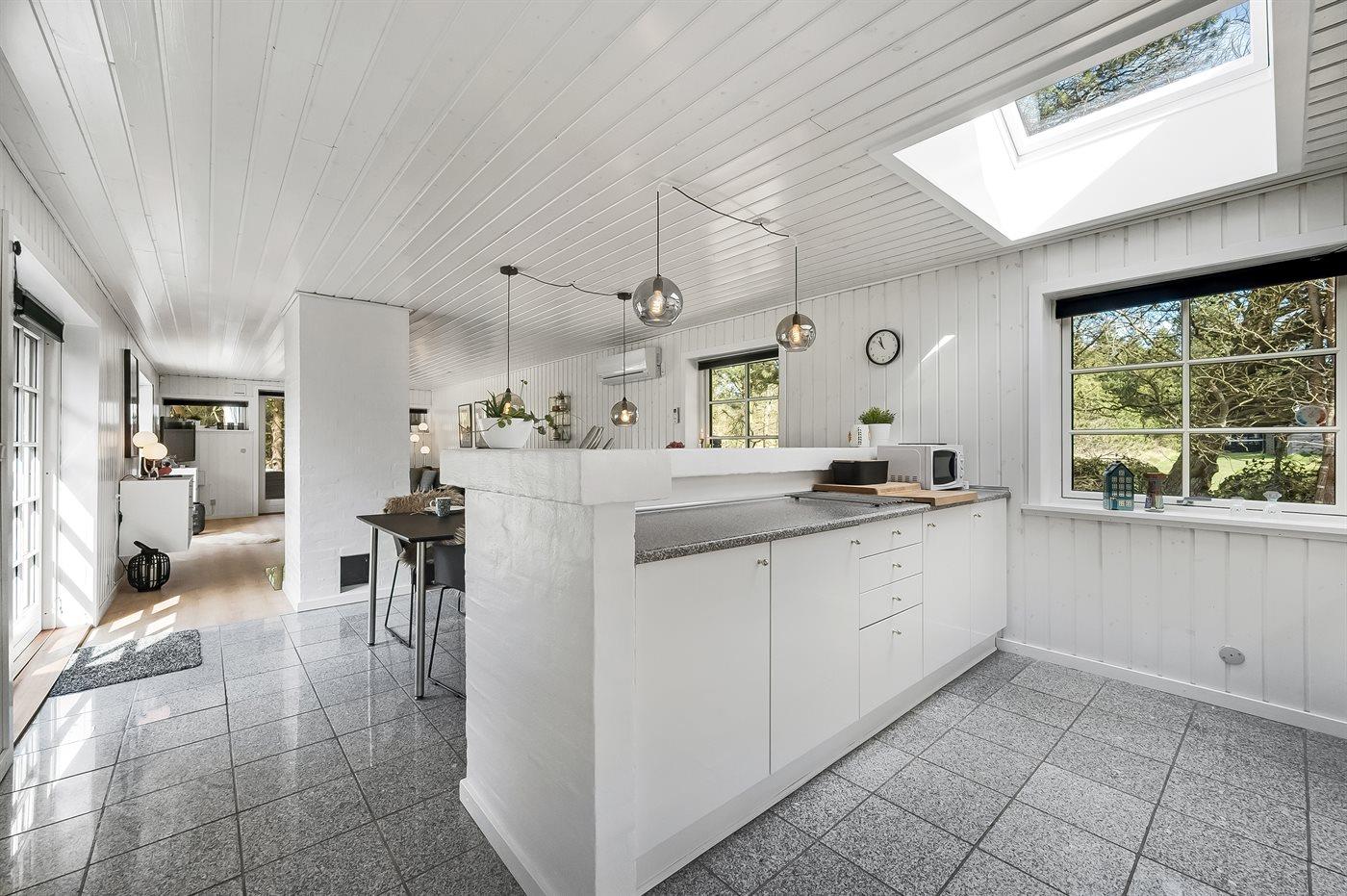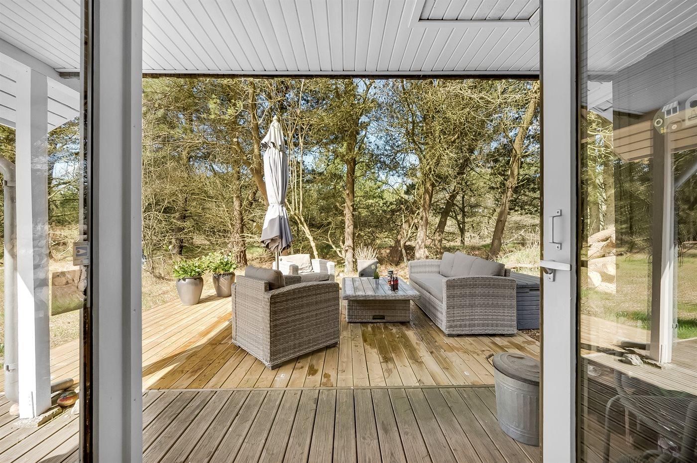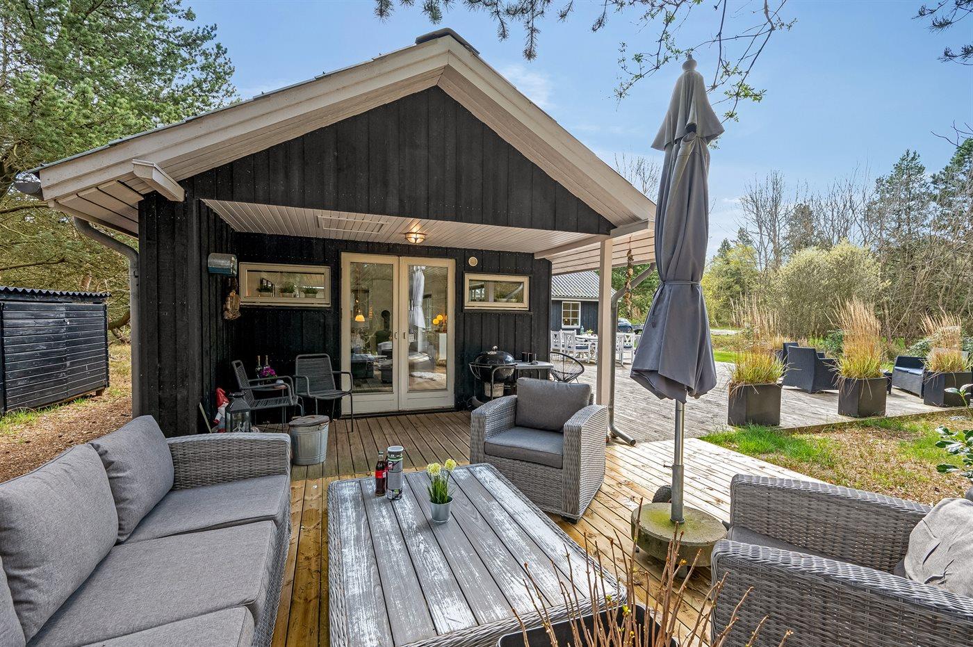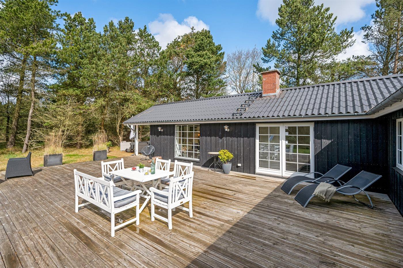 Ein besonders schönes und geräumige Ferienhaus mit heller und gemütlicher Einrichtung. Das Haus liegt in ruhiger Umgebung - auf einem großen und abgeschirmten Grundstück mit Platz für Ballspiele und andere Aktivitäten im Freien. Zum Haus gehören schöne, große Terrassen sowie ein großes Gästehaus, das mit Spielzimmer sowie Badezimmer mit Toilette eingerichtet ist.