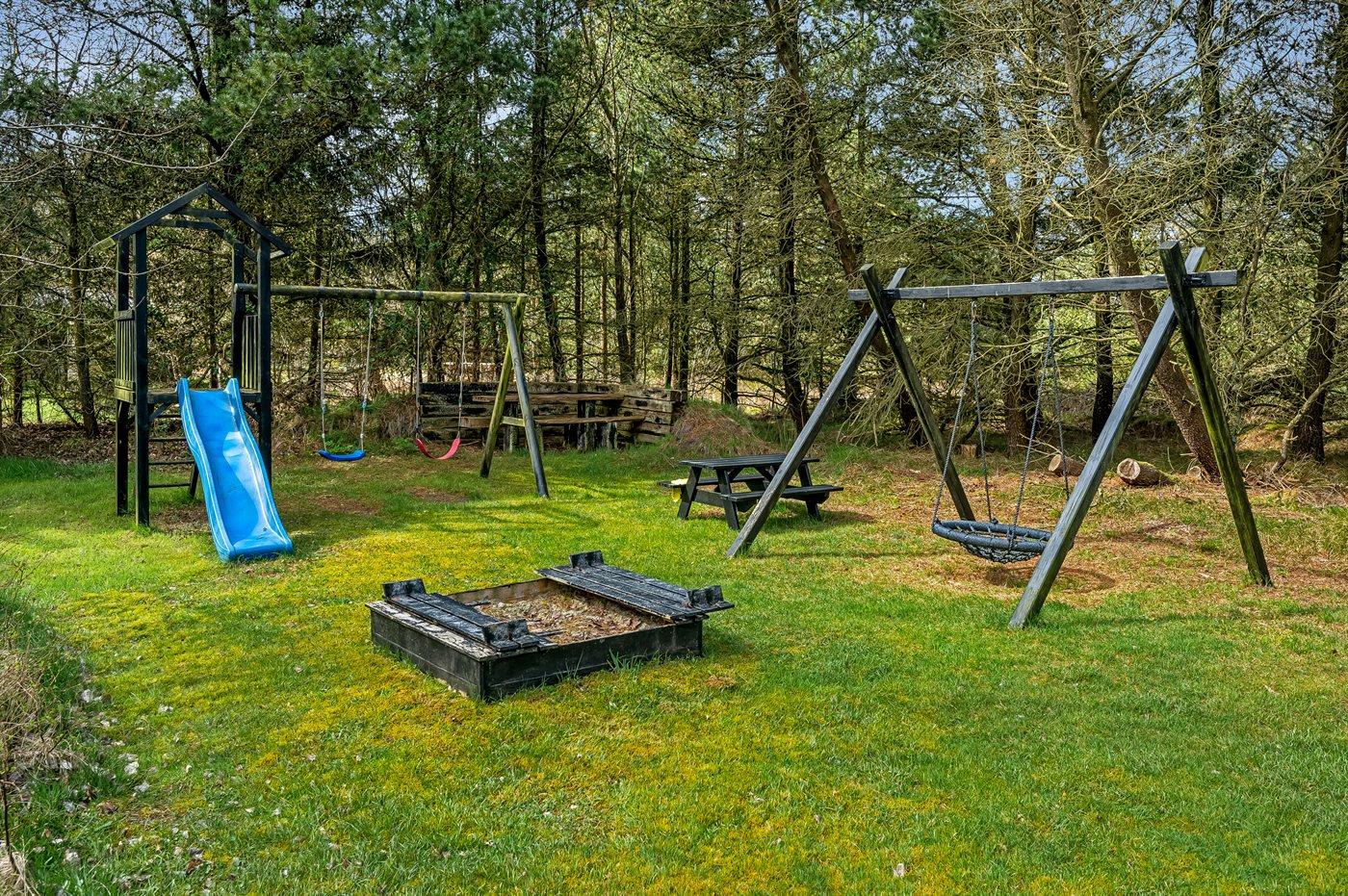 Die Ferienunterkunft liegt auf einem 2711 m² großen Naturgrundstück. Die Entfernung zum Meer beträgt 4000 m. Die Entfernung zum Fjord beträgt 1300 m. Die nächste Einkaufsmöglichkeit liegt 5500 m entfernt. Es steht ein 150 m² Terrassenareal zur Verfügung. Außerdem gibt es 10 m² überdachte Terrasse. Schaukel. Sandkasten. Spielturm. Rutsche. Fußballtor. Es steht ein Grill zur Verfügung. Parkplatz auf dem Grundstück.