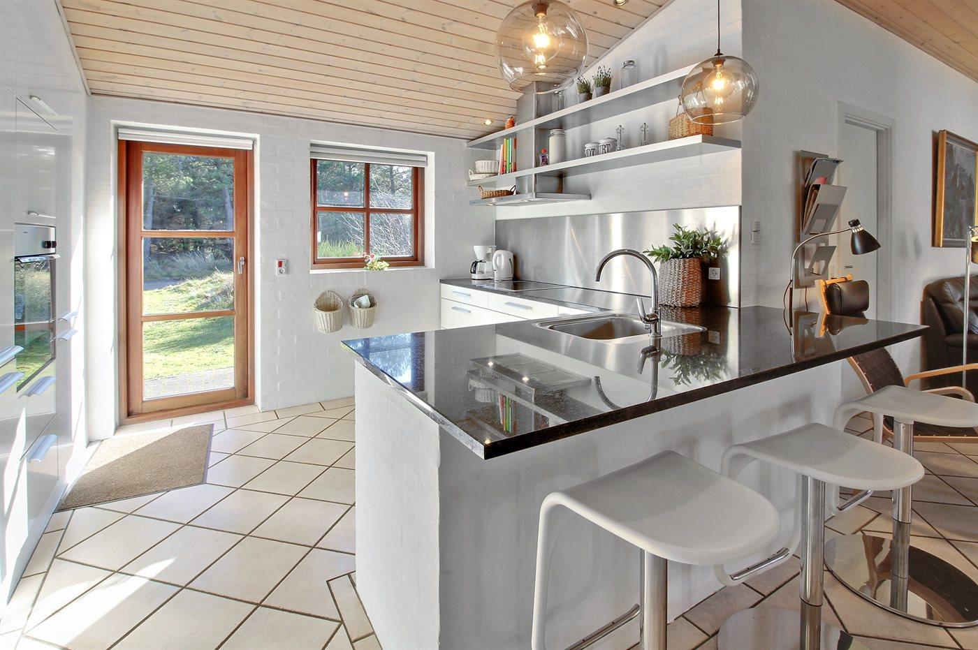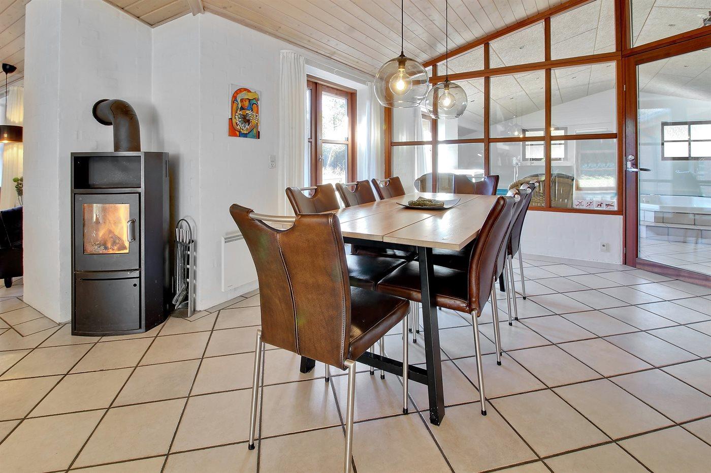 Auf einem herrlichen Naturgrundstück in Blavand und in ruhiger Umgebung finden Sie dieses schöne und gepflegte Ferienhaus mit u. a. Swimmingpool. Zum Haus gehören eine gegen Osten gerichtete Terrasse sowie eine große und ungestörte, gegen Südwesten gerichtete Terrasse. Eine große Glasfront trennt das Wohnzimmer von der Pool-Abteilung, die mit einem 5-Pers.-Whirlpool (Standwasser) sowie einem großen Swimmingpool mit Gegenstromanlage eingerichtet ist. Ferner ist eine energiebesparende Luft zu Wasser Wärmepumpe installiert.