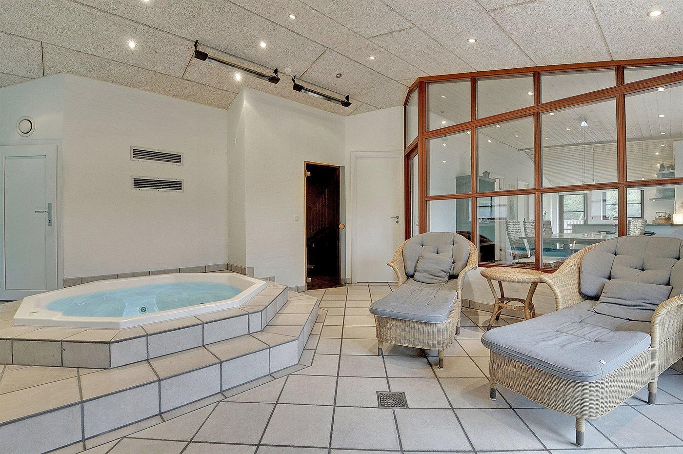 Entspannen Sie sich im Innen-Standwasser-Whirlpool für 4 Personen.
