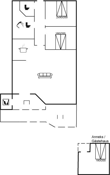 Das Ferienhaus eignet sich für 6 Personen sowie 1 Kleinkind bis zu 3 Jahren. Die Ferienunterkunft hat eine Wohnfläche von 116 m² und wurde 1972 gebaut. 2002 wurde die Ferienunterkunft renoviert. Haustiere dürfen nicht mitgebracht werden. Die Ferienunterkunft ist mit energiesparender Wärmepumpe ausgestattet. Die Ferienunterkunft ist mit Waschmaschine ausgestattet. Wäschetrockner. Tiefkühlmöglichkeit mit 10 Liter Nutzinhalt. Es gibt außerdem einen Kaminofen. Für die jüngsten Feriengäste ist 1 Kinderhochstuhl vorhanden. Wickeltisch. Babybadewanne.
