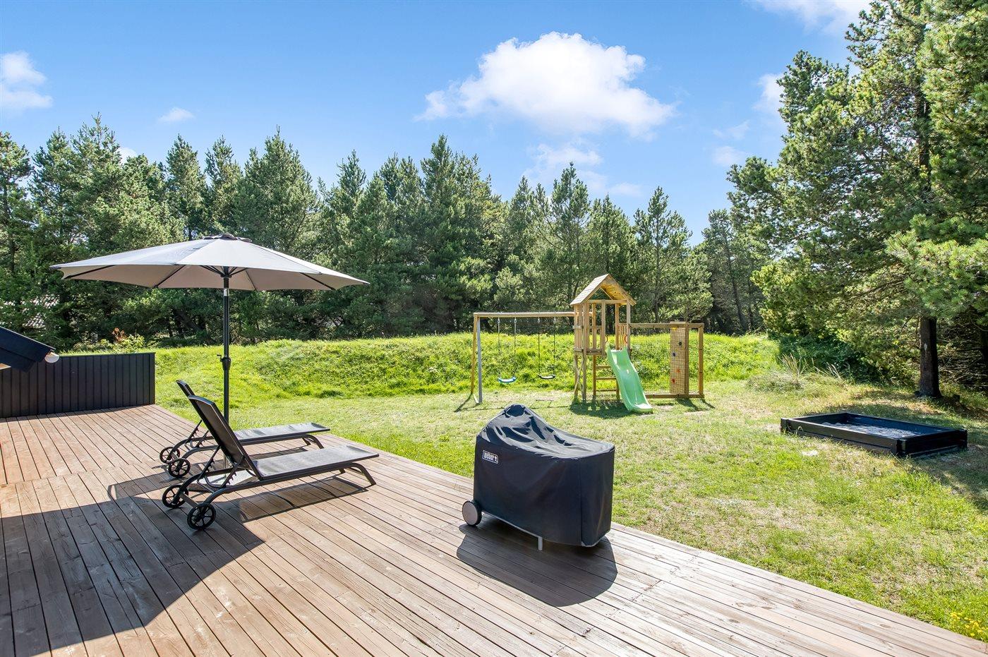 Die Ferienunterkunft liegt auf einem 1750 m² großen Naturgrundstück. Die Entfernung zum Meer beträgt 1800 m. Die nächste Einkaufsmöglichkeit liegt 800 m entfernt. Es steht ein 70 m² Terrassenareal zur Verfügung. Zutritt zu einem Atriumgarten. Geräteraum. Schaukel. Sandkasten.Wippe. Es ist ein Ladestecker für Elektroautos installiert.