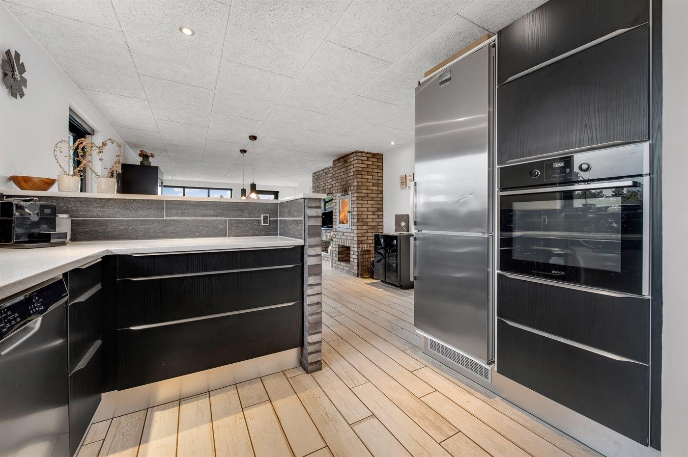 Die Küche ist mit Kühlschrank ausgestattet, und 2 extra Kühlschränke befinden sich im Schuppen. Außerdem gibt es 4 Induktions-Kochzonen, Umluftofen, Mikrowelle sowie Geschirrspüler.