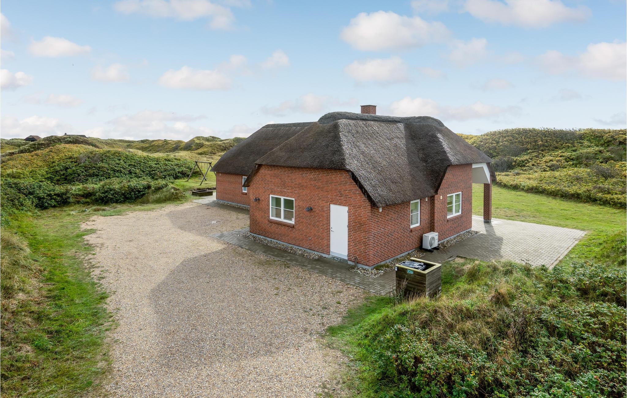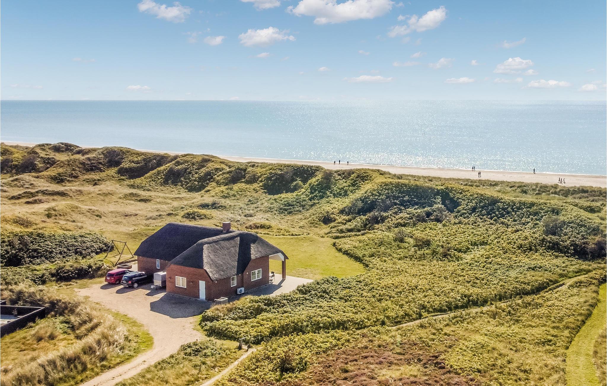 Fantastisches Luxusferienhaus, bei dem durch und durch an Qualität und Design gedacht wurde. In der Saison 2018 ist es fertig gebaut. Es ist ein Steinhaus mit Strohdach und liegt auf einem der attraktivsten Grundstücke Blåvands, direkt hinter den Dünen und mit der Nordsee als Nachbarn. Das helle Haus bietet vom Wohnzimmer mit offener Küche eine fantastische Aussicht in die Dünen direkt vorm Fenster. Der Kamin sorgt mit drei Glasseiten für die richtige Ferienstimmung. Das Haus verfügt über drei Badezimmer, das eine mit direktem Zugang zu dem einen Schlafzimmer. Draußen stehen Ihnen mehrere schöne Terrassen zur Verfügung, sowohl offene als auch überdachte.