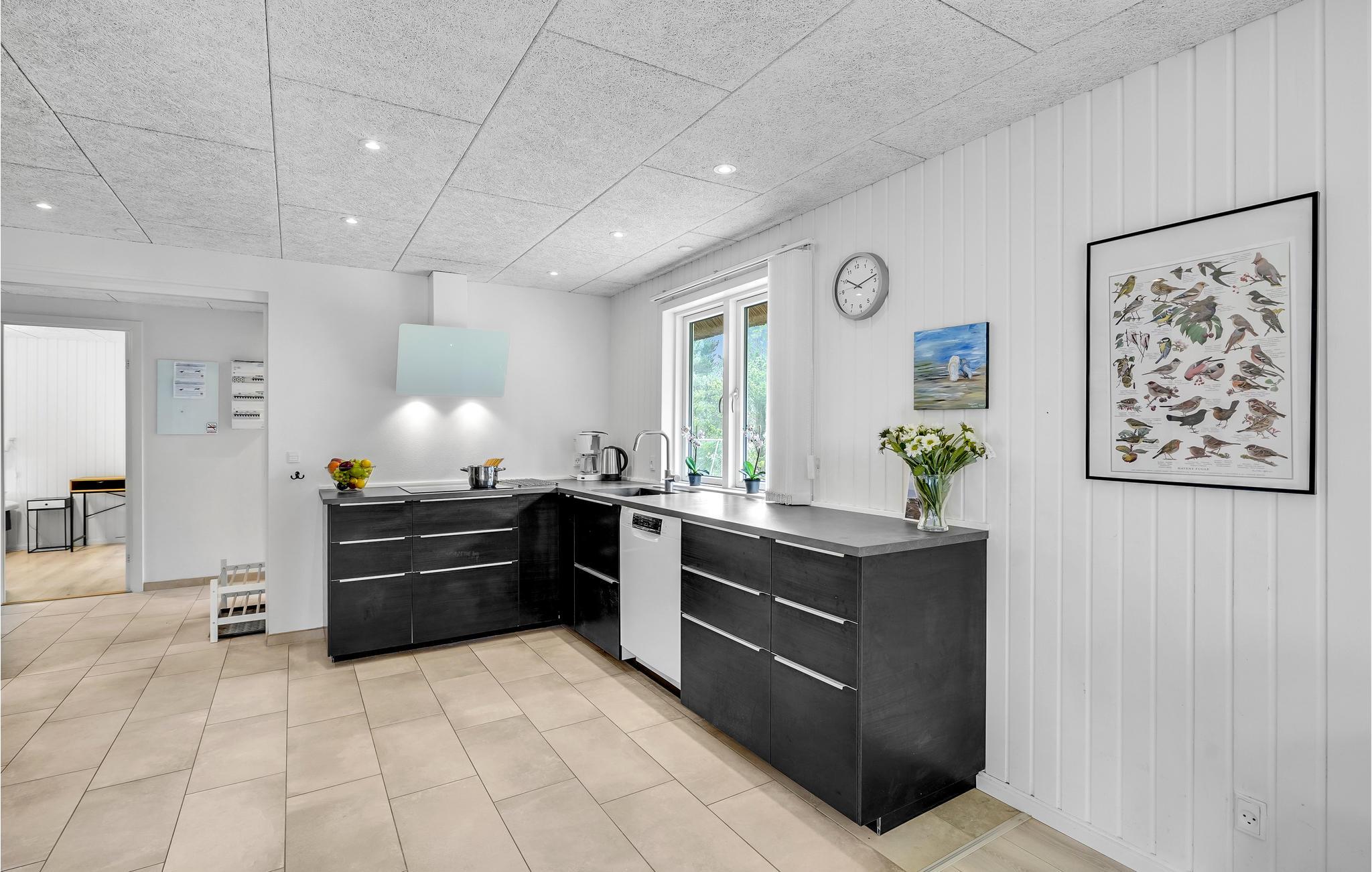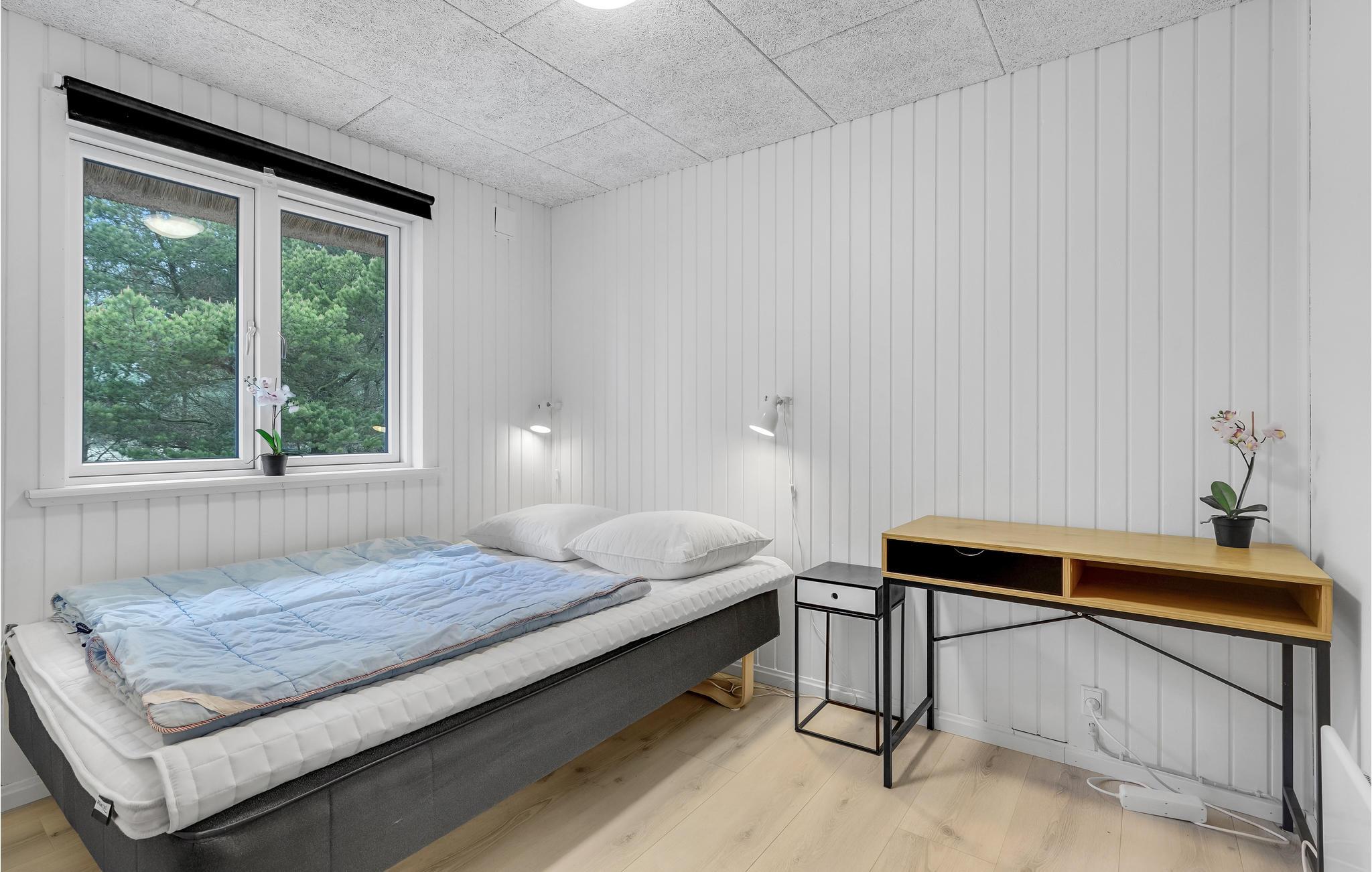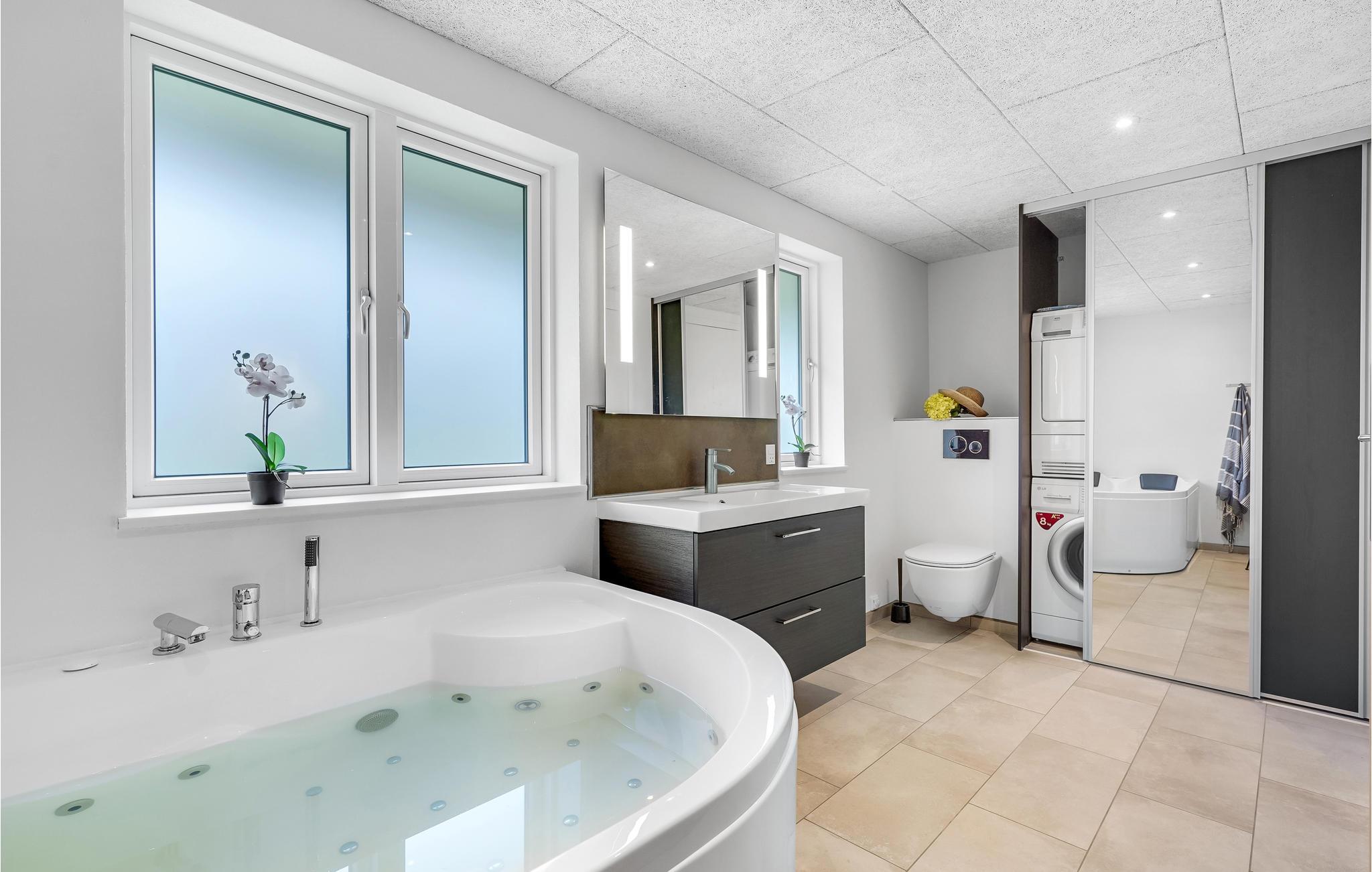 Auf einem großen, offenen Naturgrund in Blåvand liegt dieses gemütliche Haus mit seinem Schilfdach und einer modernen Einrichtung. Die Terrassen sind überdacht, so können Sie auch bei Regenwetter im Freien sitzen und grillen. Im Haus sind Whirlpool und Sauna vorhanden, es ist somit ein guter Stützpunkt für einen entspannenden Urlaub. Im 1. Stock gibt es einen Aktivitätsraum, wo Sie viele gemütliche Stunden verbringen können. Das Haus bietet 3 Schlafzimmer und einen Alkoven mit 2 Schlafplätzen im 1. Stock sowie eine Gästetoilette.